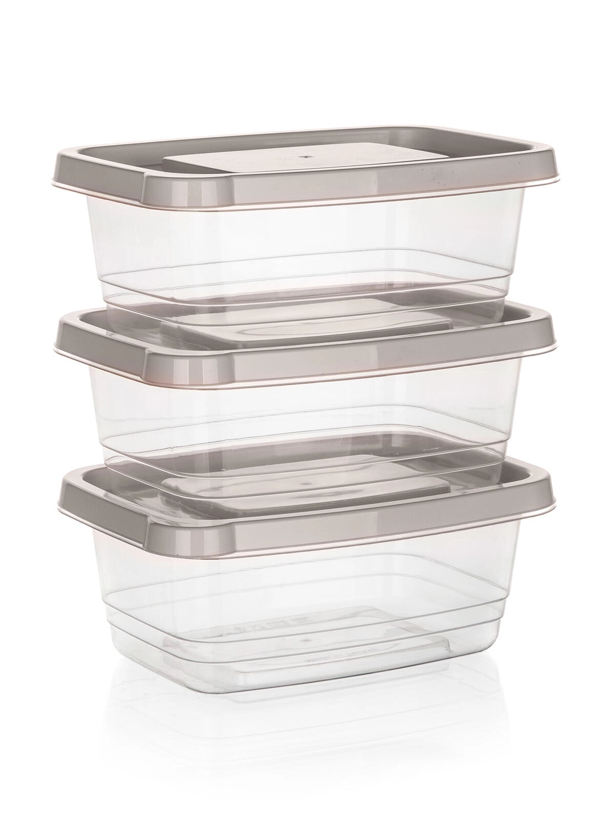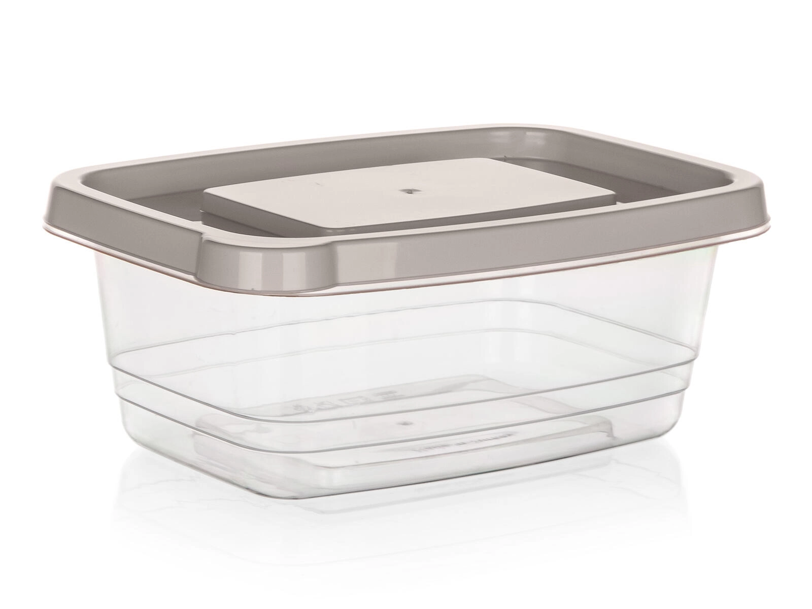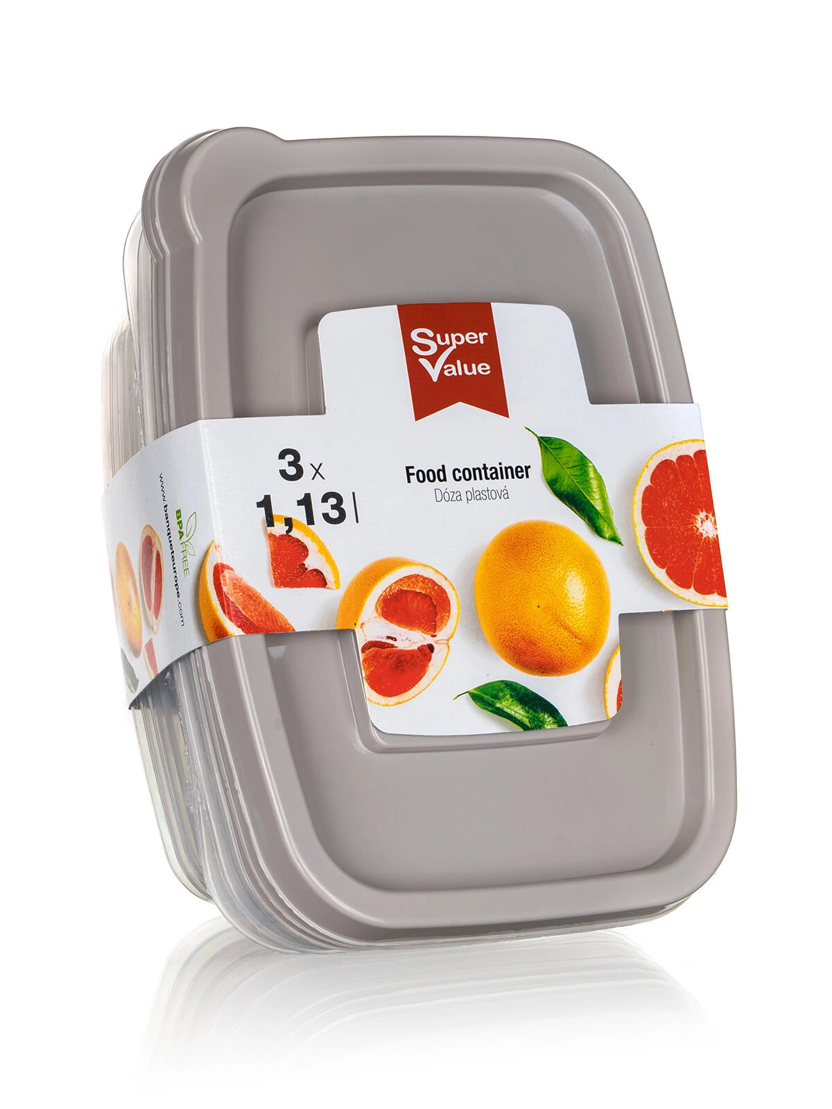 Komplet SUPER VALUE ponuja tri univerzalne plastične posode s prostornino 1,13 l z elegantnimi pokrovi v barvi Latte. Zahvaljujoč prozornemu ohišju vedno hitro vidite, kaj je v notranjosti, tesno prilegajoč pokrov pa pomaga ohranjati svežino in preprečevati razlitje.