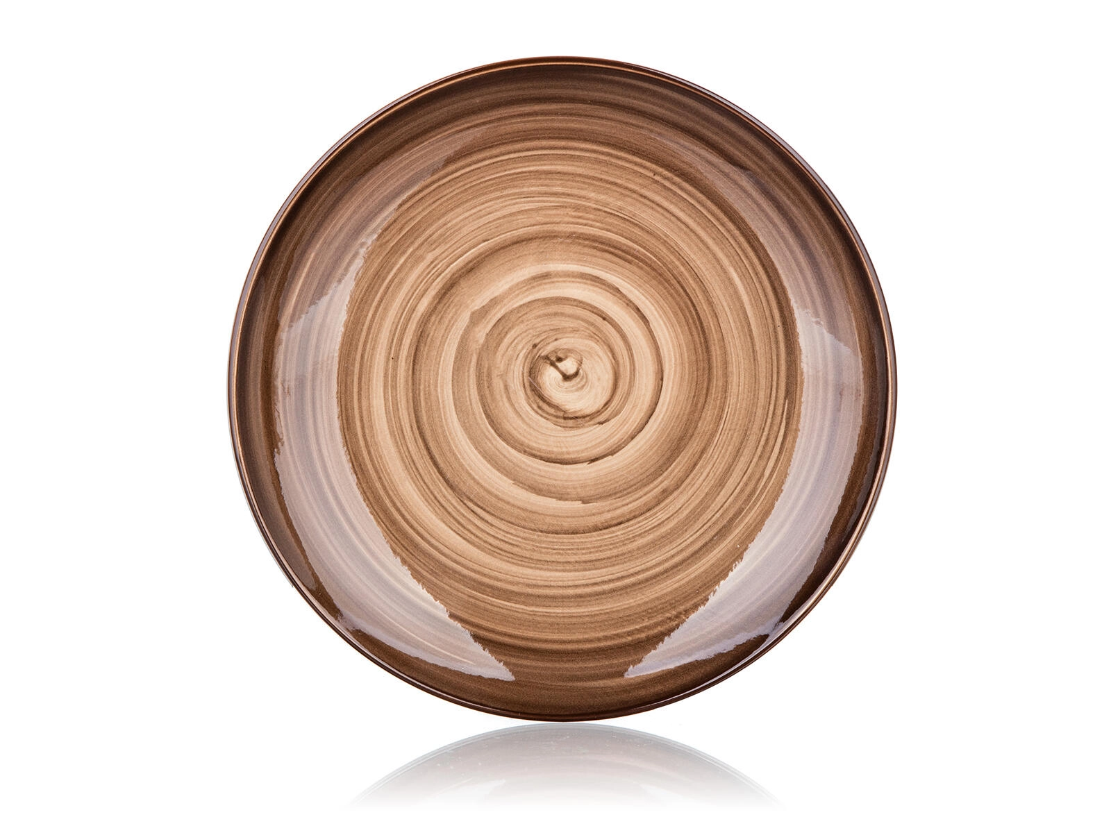 Eleganten plitek krožnik Palas s premerom 27 cm v rjavem glaziranem izvedenju za vsakodnevno pogostitev. Izdelan je iz kakovostne keramike, enostaven za vzdrževanje in primeren za mikrovalovno pečico ter pomivalni stroj. Minimalistična zasnova s toplim rjavim odtenkom bo vašemu stolu dodala moderen videz in je odlična za serviranje glavnih jedi, solat in sladic.