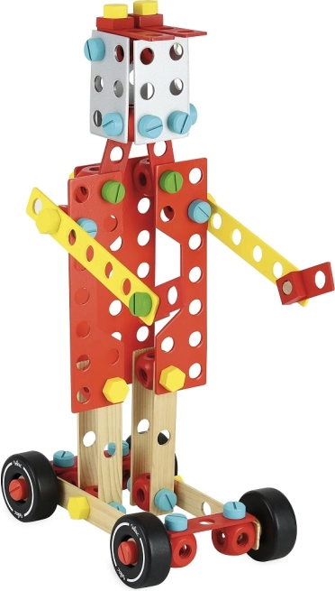Lesena konstrukcijska igra Vilac Super Batibloc je idealna izbira za male graditelje. Več kot 100 pisano obarvanih kosov, vijakov in spojk omogoča izdelavo najrazličnejših modelov – od vozil do preprostih figuric. Priloženi priročnik s 6 projekti po korakih pomaga pri prvih poskusih in nato podpira lastno ustvarjalno snovanje.