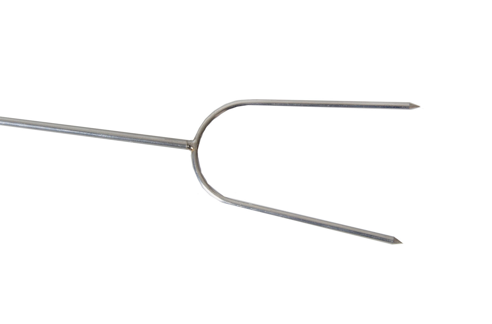 Dvojne špice z ostrimi konicami zanesljivo držijo živila in preprečujejo njihovo vrtenje. Vilica je idealna za taborne ognje, vrtno peko na žaru in kampiranje – preprosto zanesljiv pomočnik za vsakega ljubitelja peke.
