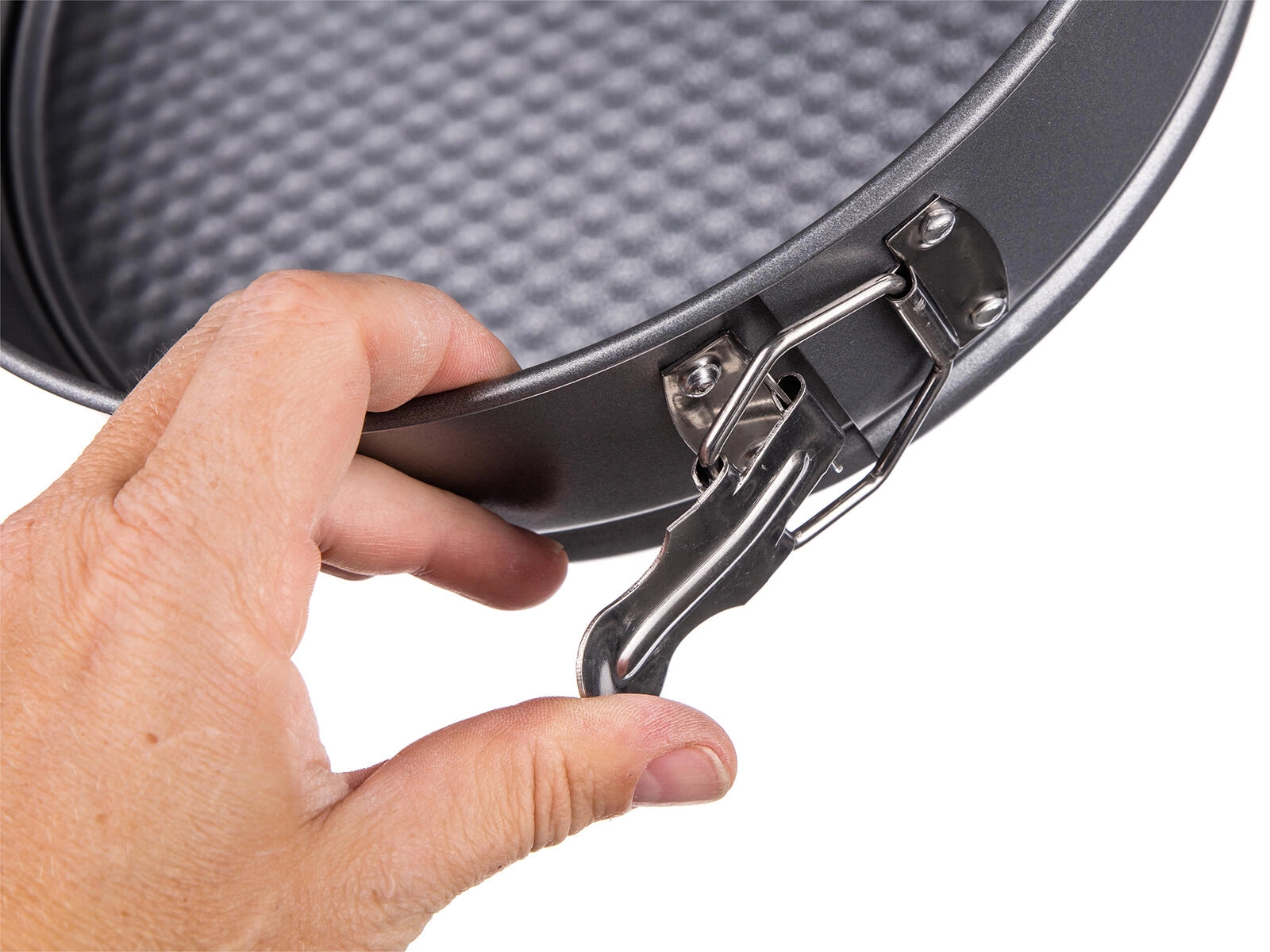 Stransko zapiralo z enim gibom sprosti obod pekača, zato torto odstranite brez poškodb in z popolnoma gladkimi stranicami.