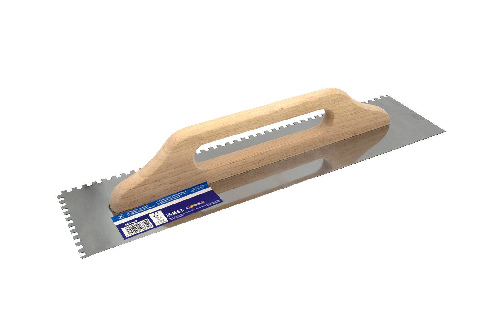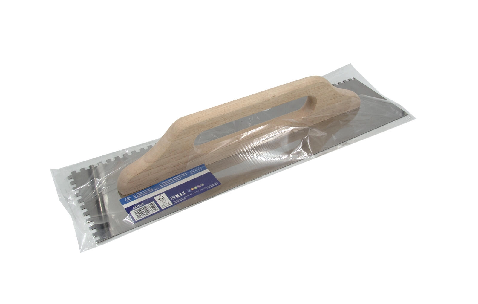 Profesionalno gladilo iz nerjavnega jekla z zobmi 6 mm za natančen nanos lepil, izravnalnih mas in ometov na večje površine. Ponuja odporno nerjavno rezilo, stabilen lesen ročaj in optimalne dimenzije 500 × 130 mm za učinkovito in enakomerno razporejanje materiala.