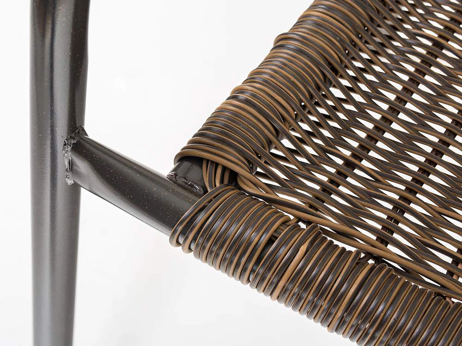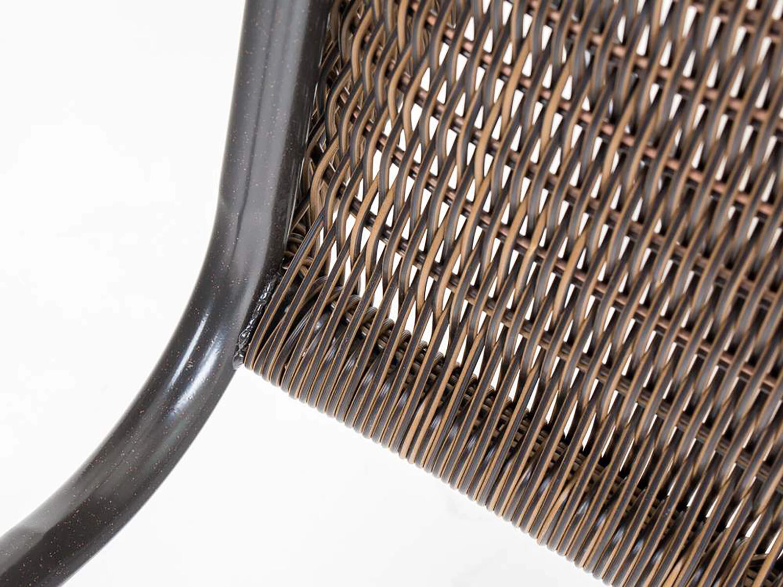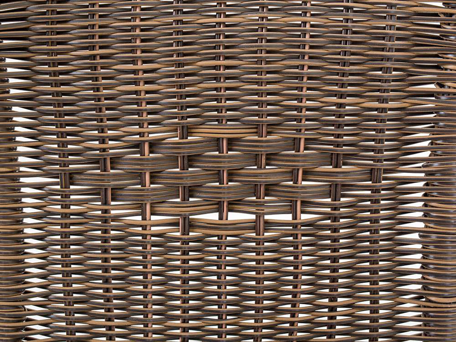 Sintetični ratan v rjavem odtenku je odporen na vlago in se enostavno čisti, zato je idealen za celoletno zunanjo uporabo.