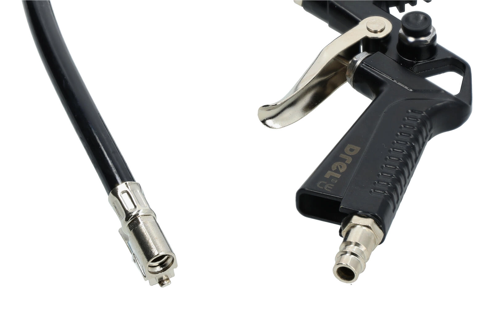 Z ergonomskim ročajem in gladkim sprožilcem imate popoln nadzor nad pretokom zraka. Robustna kombinacija kovine in odporne plastike zagotavlja dolgo življenjsko dobo in stabilno delovanje pri redni uporabi s kompresorjem.