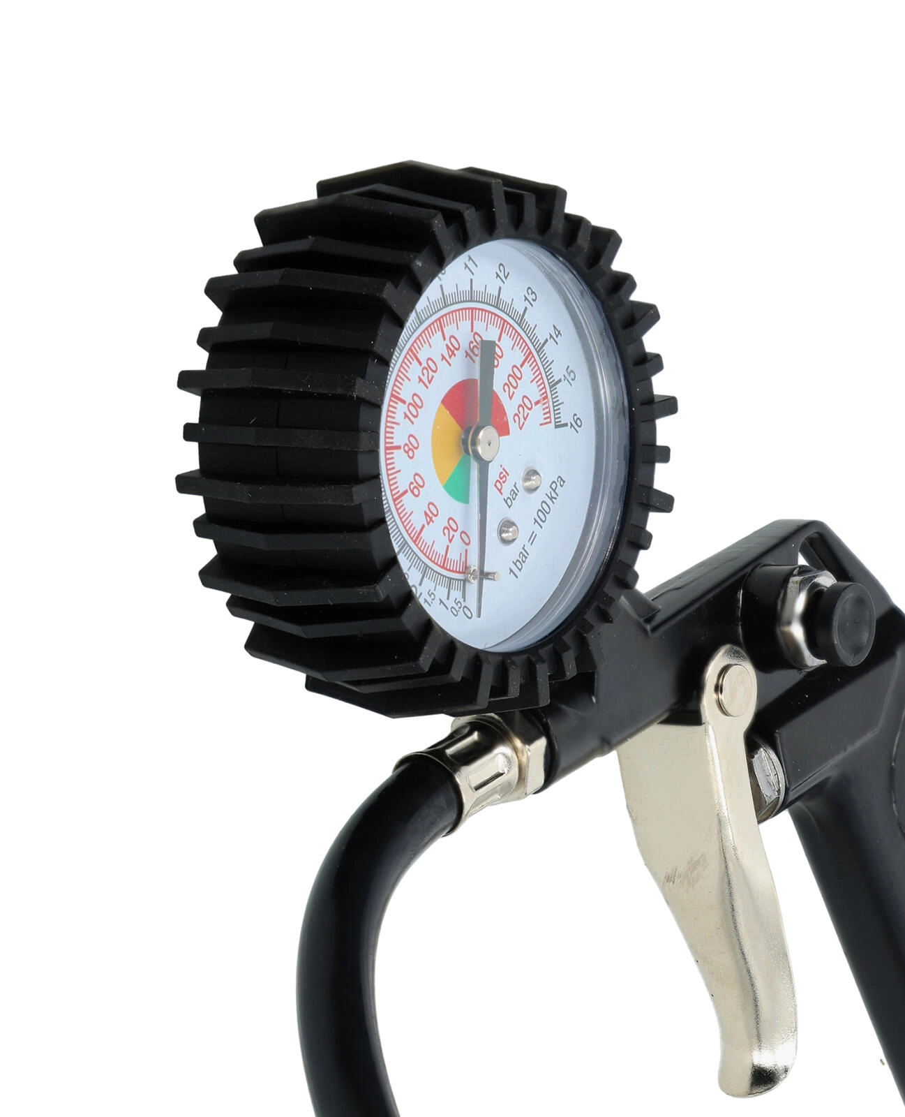- Analogni manometer (PSI / bar) z barvnimi območji