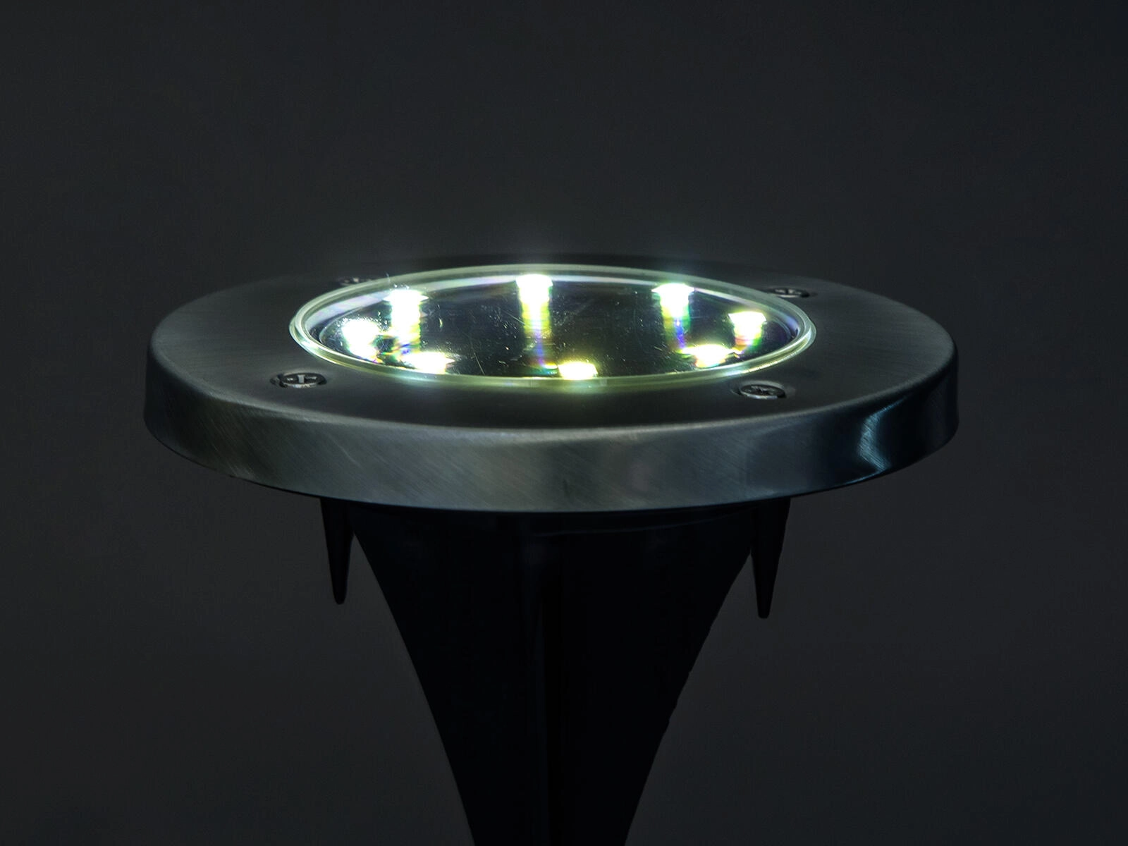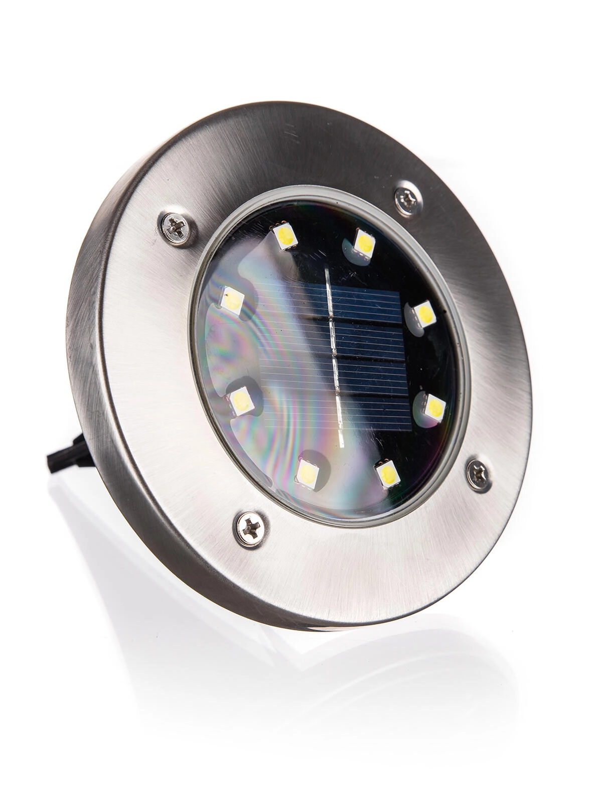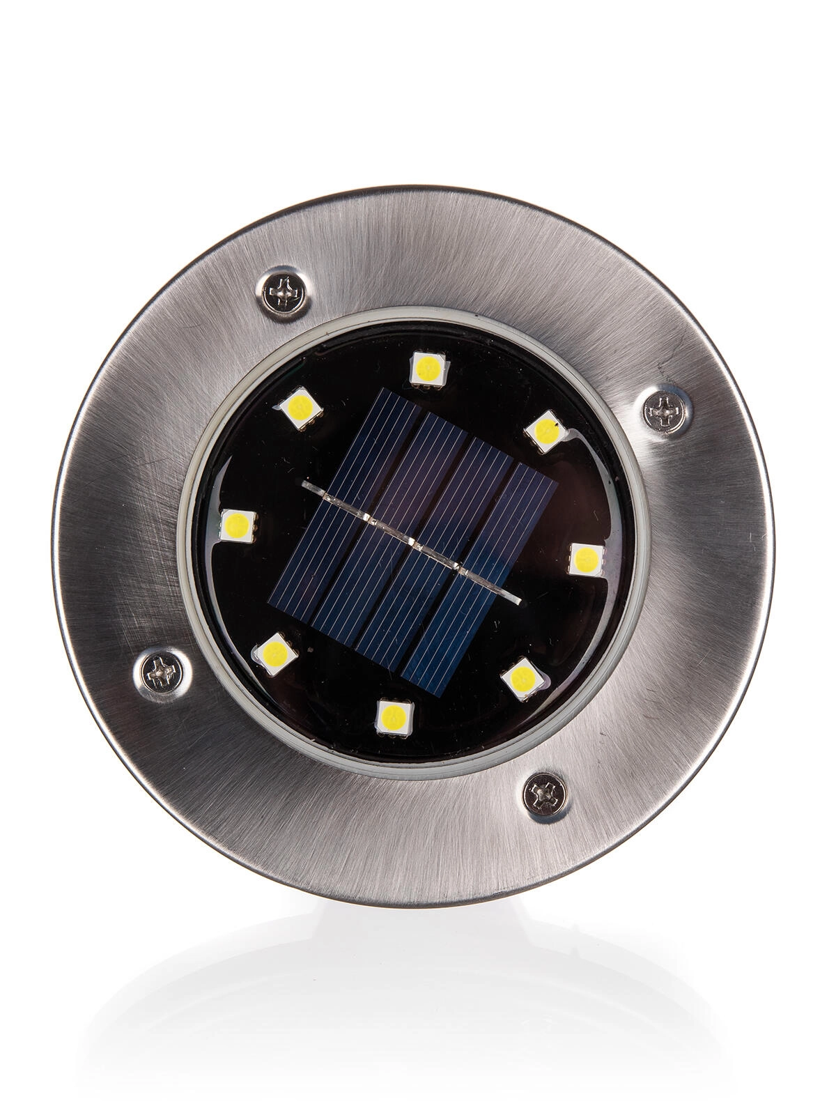 Elegantna vgradna talna solarna svetilka s premerom 12 cm nudi brezžično zunanje osvetlitev brez potrebe po kablih. Kombinacija nerjavečega jekla in odporne plastike zagotavlja dolgo življenjsko dobo, 8 varčnih LED z belo svetlobo se ob mraku samodejno vklopi. Zahvaljujoč IP44 je idealna za poti, gredice in travnate površine.