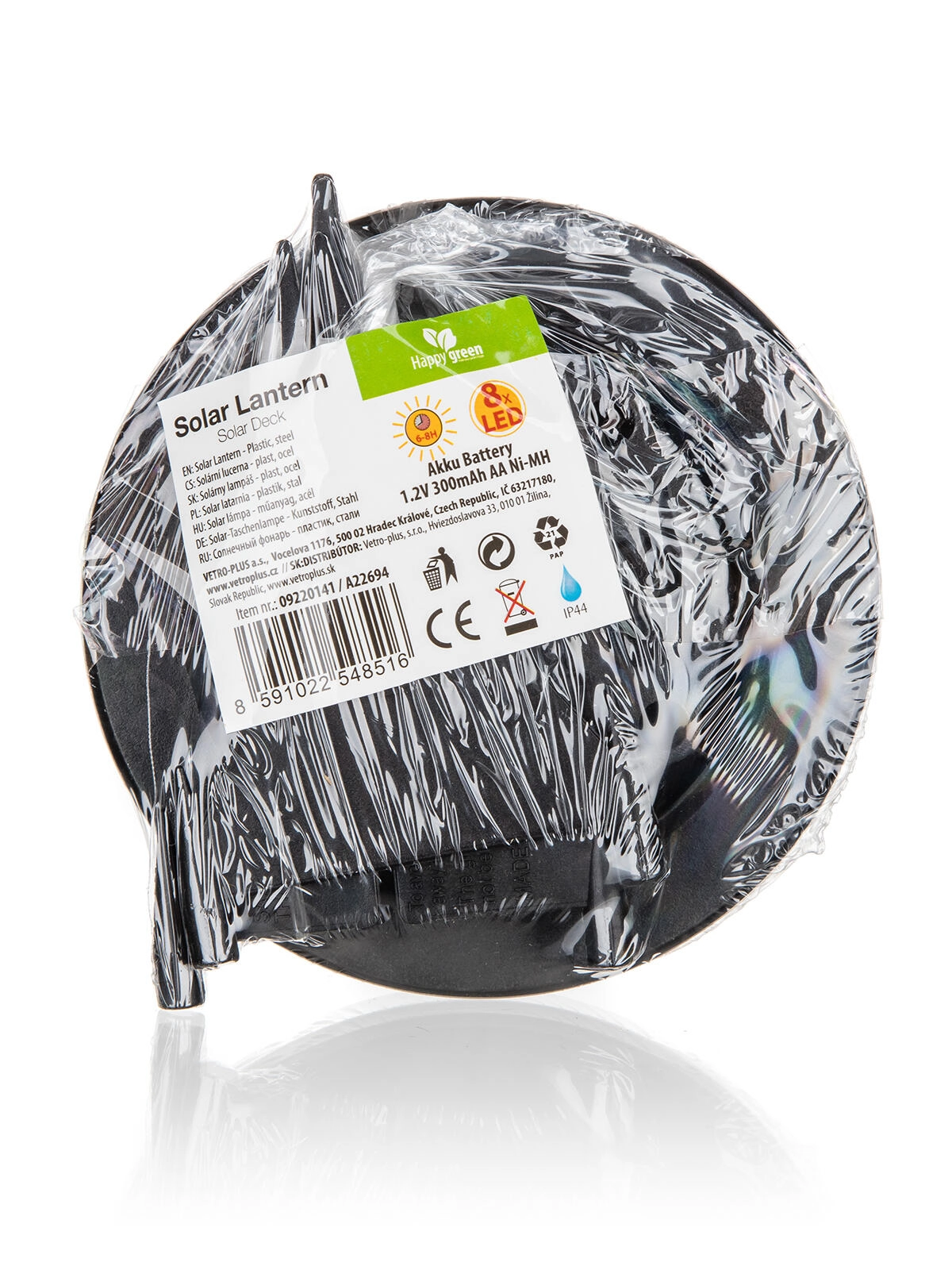 Kombinacija nerjavečega jekla in kakovostne plastike z zaščito IP44 kljubuje dežju in škropljenju vode – idealno za vrt in poti.