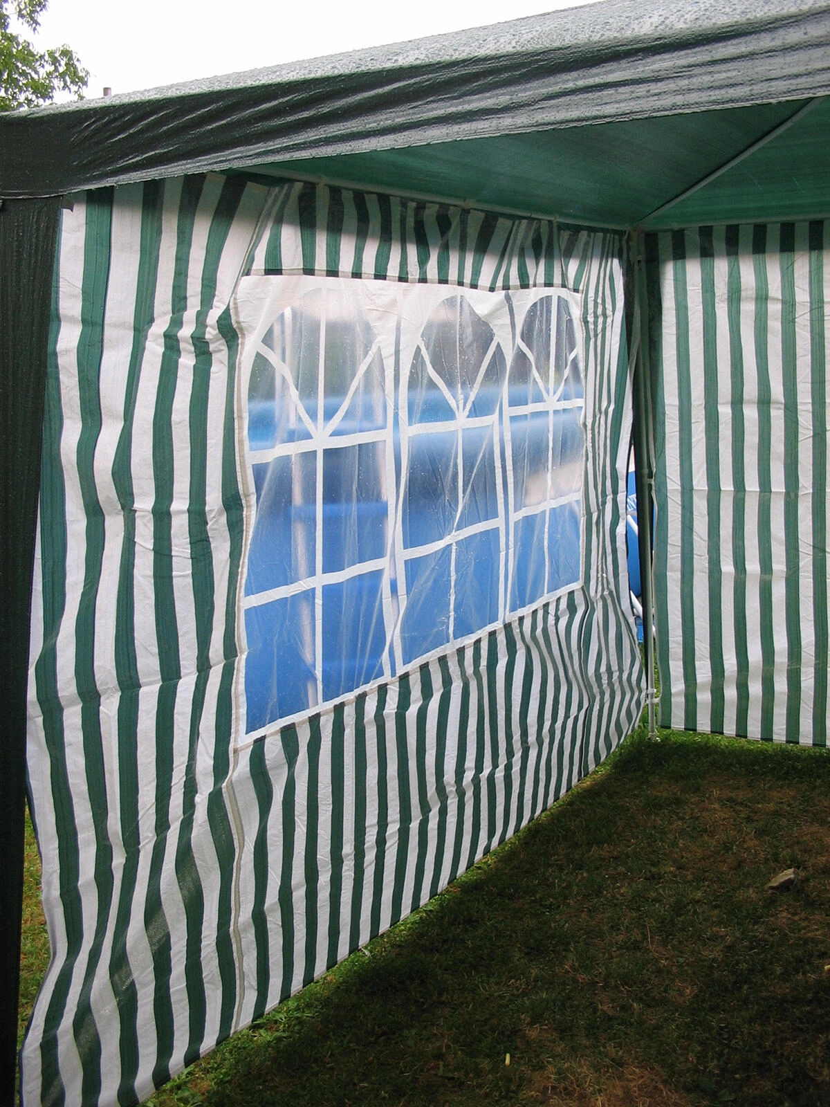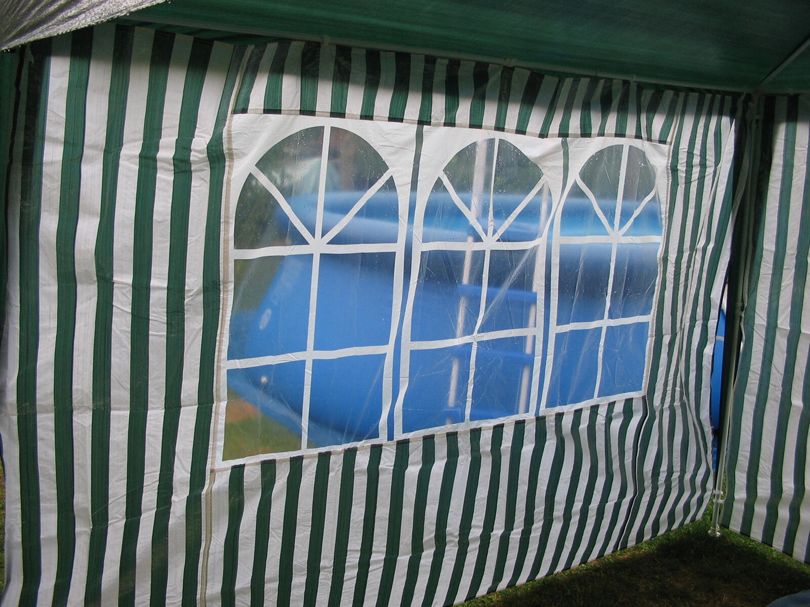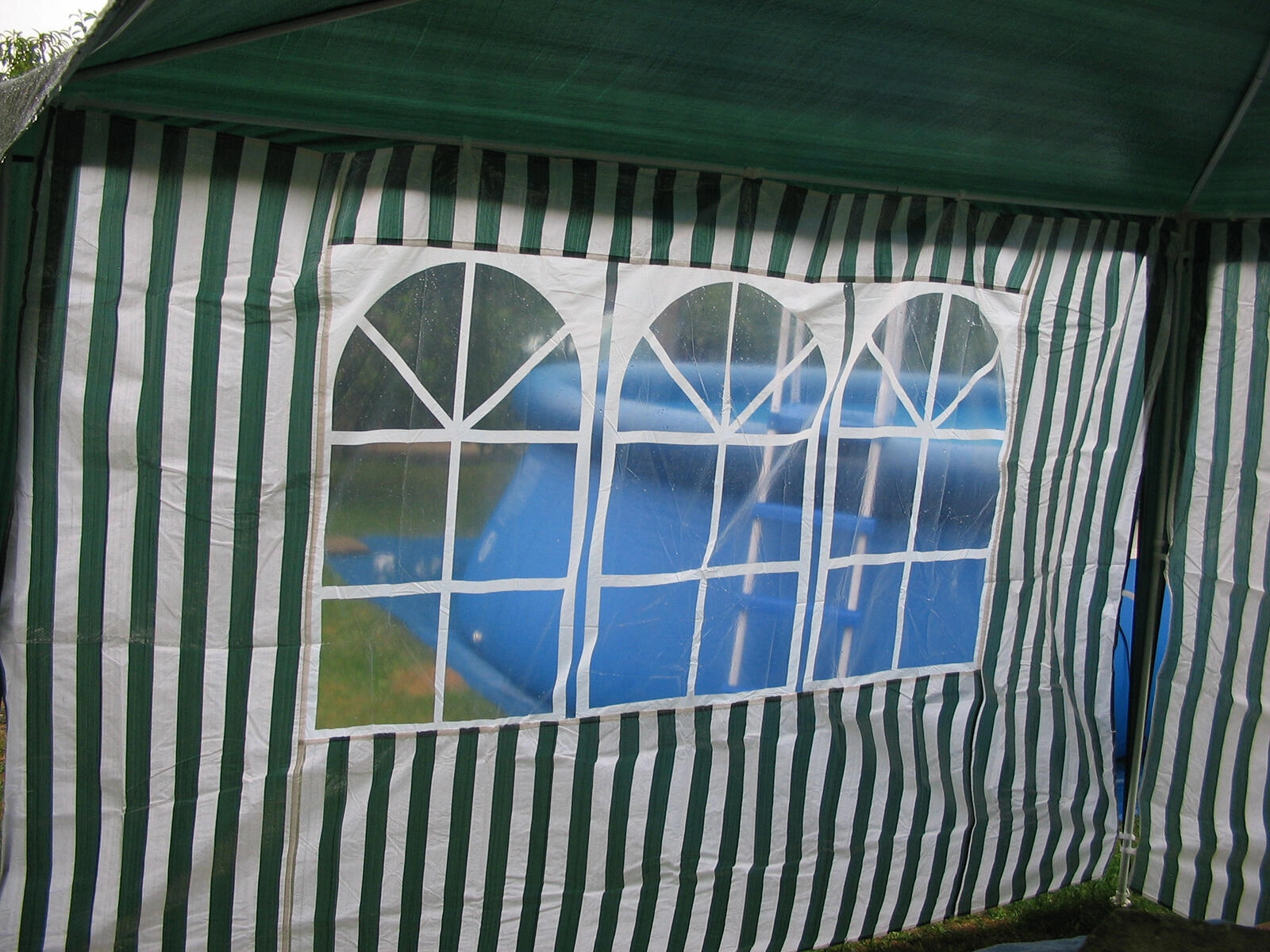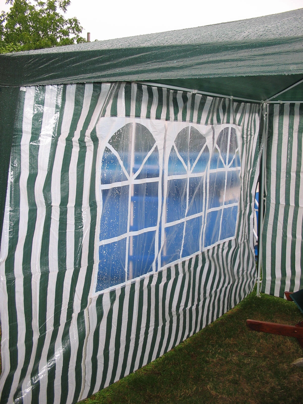 Praktična stranska stena za vrtne paviljone in party šotore z merami 295 × 190 cm s tremi okni iz prozornega PVC. Trpežen PE material 100 g/m² ščiti pred vetrom in rahlim dežjem, medtem ko okna prepuščajo dovolj dnevne svetlobe. Idealni dodatek za paviljone 3 × 3 m v elegantni izvedbi belo‑zelenih črt.