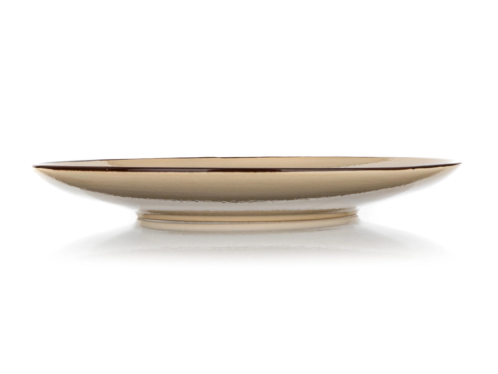 Nežen krem odtenek s temnejšim robom doda pogrinjku harmonijo in slog. Bleščeča glazura poudari servirane jedi in hkrati olajša čiščenje.