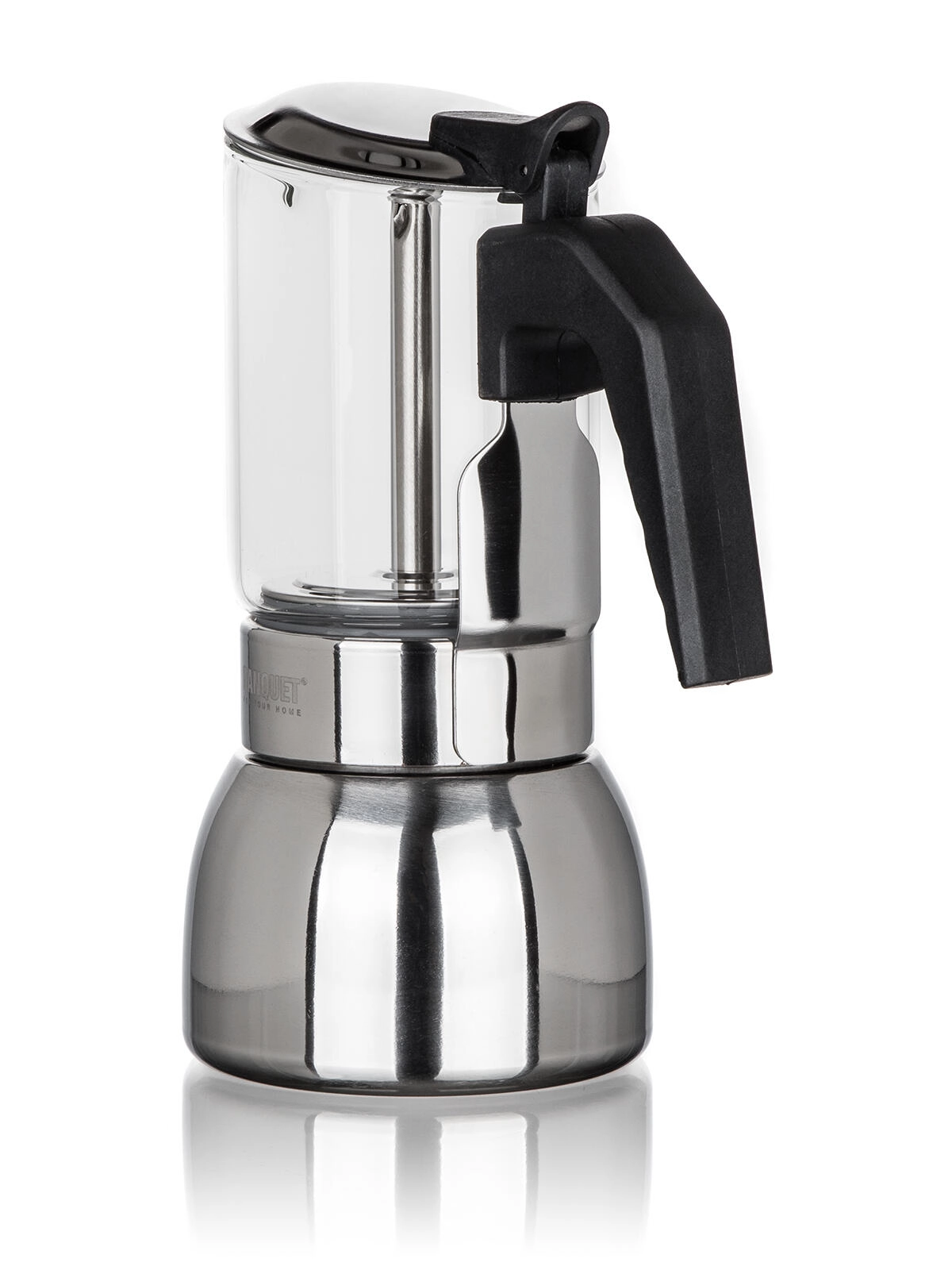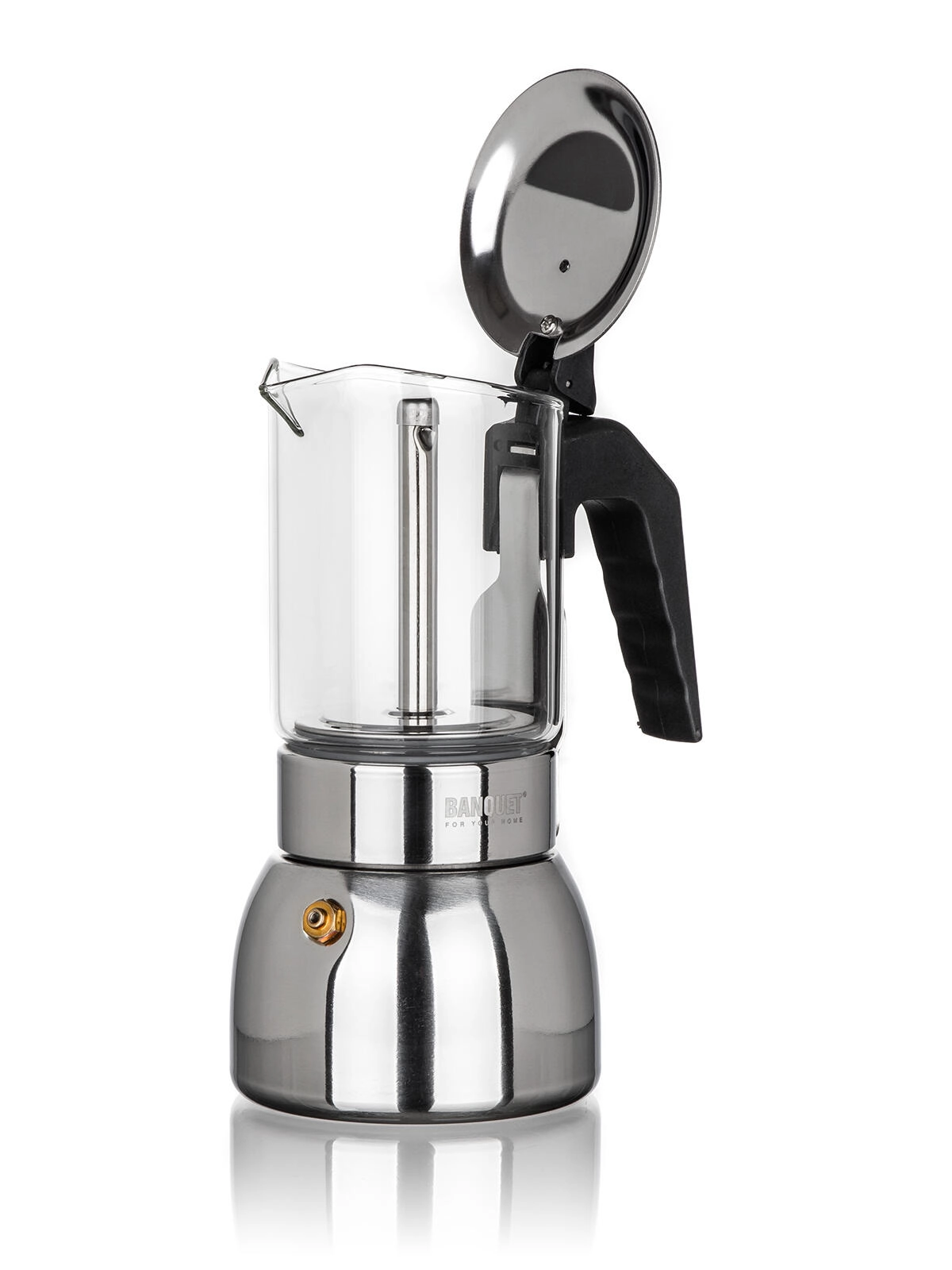 Stekleni del vam omogoča spremljanje nivoja napitka in poteka kuhanja, zato boste kavo odstavili s štedilnika v pravem trenutku za najboljši okus.