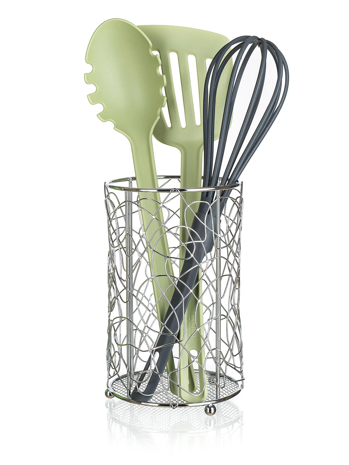 Idealno za shranjevanje žlic, vilic, lopatic ali metlic neposredno na kuhinjskem pultu. Kompaktne mere prihranijo prostor, a vseeno nudijo dovolj prostora za vsakodnevne potrebe. Stabilno dno pomaga preprečevati prevrnitev in ohranja delovno površino urejeno.