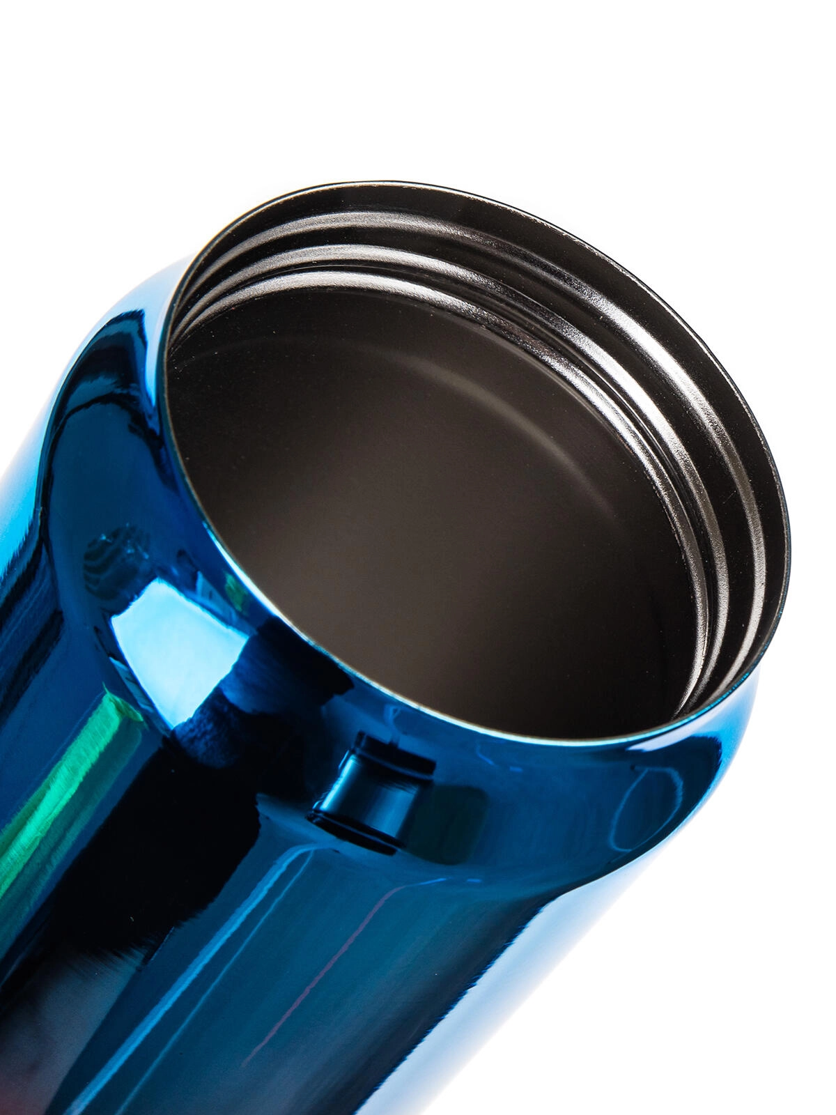 Slogovna termovka v obliki pločevinke s prostornino 0,43 l v privlačni mavrično modri barvi. Zahvaljujoč vakuumsko izoliranemu dvostenskemu nerjavnemu ohišju pijače dlje ostanejo tople ali hladne. Ima odstranljiv pokrov z ustnikom, večkrat uporabno slamico in odporno nerjavno izvedbo za vsakodnevno uporabo.