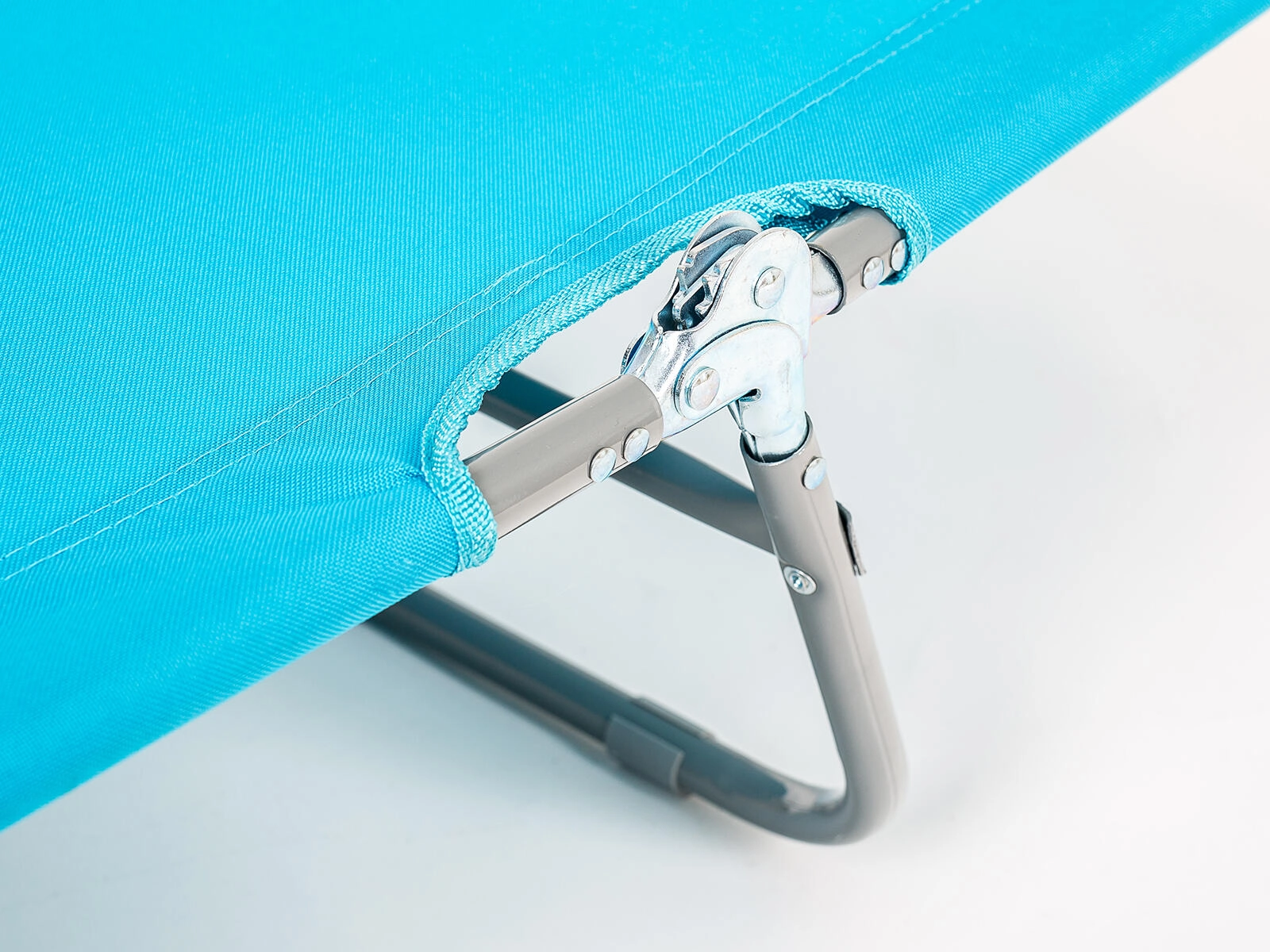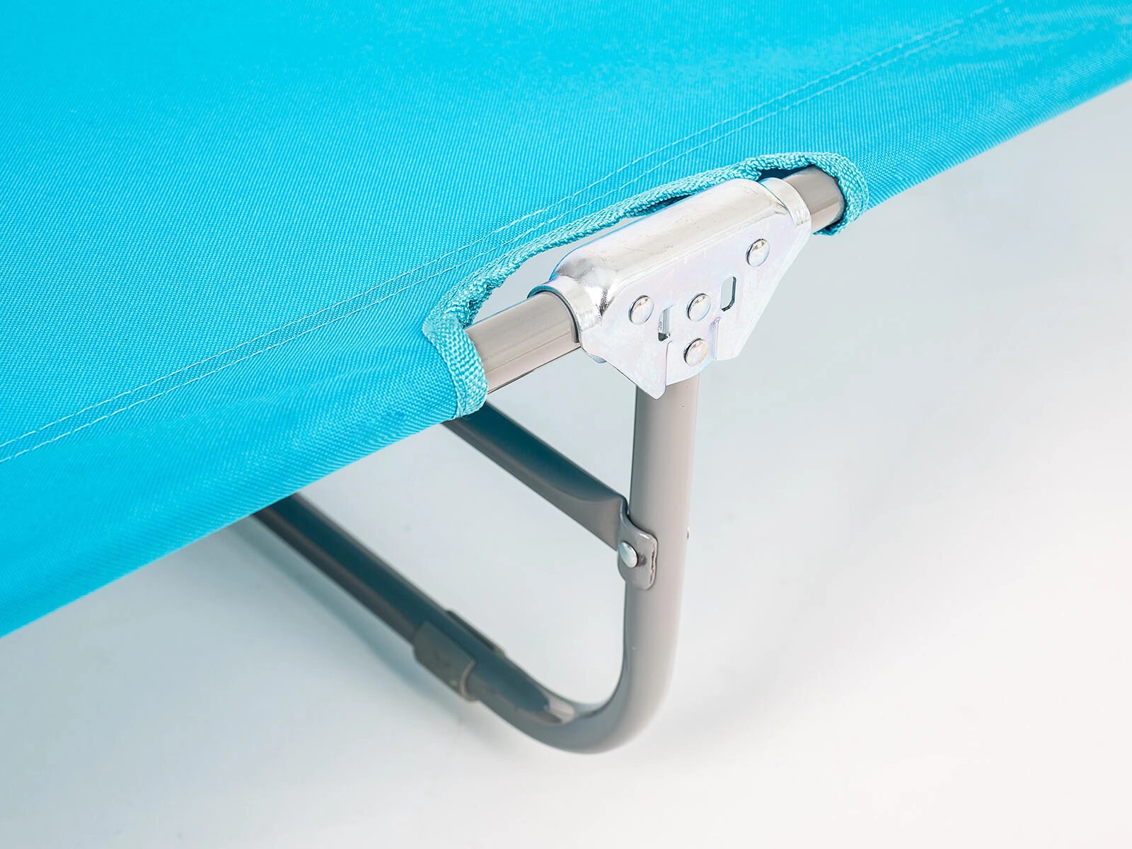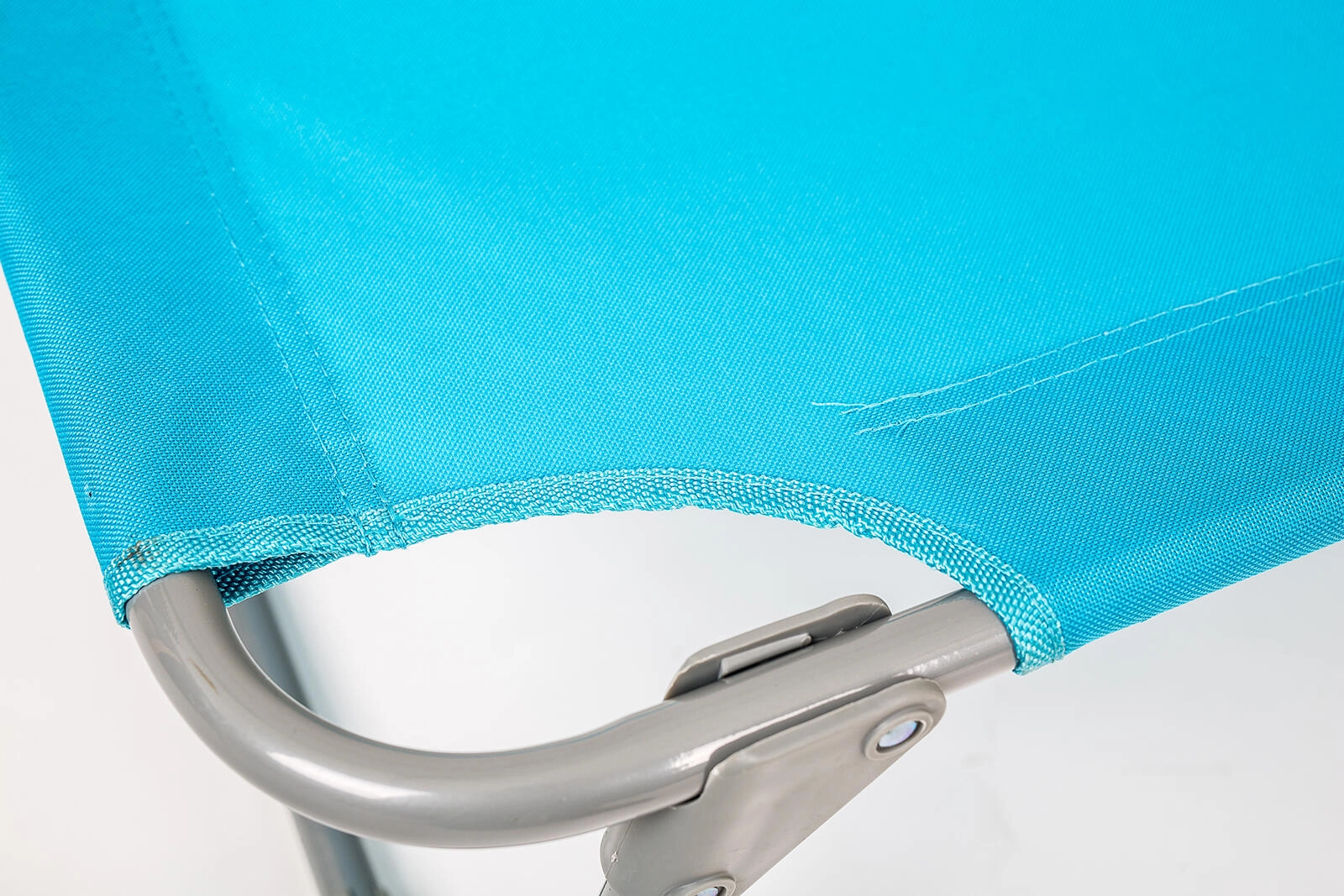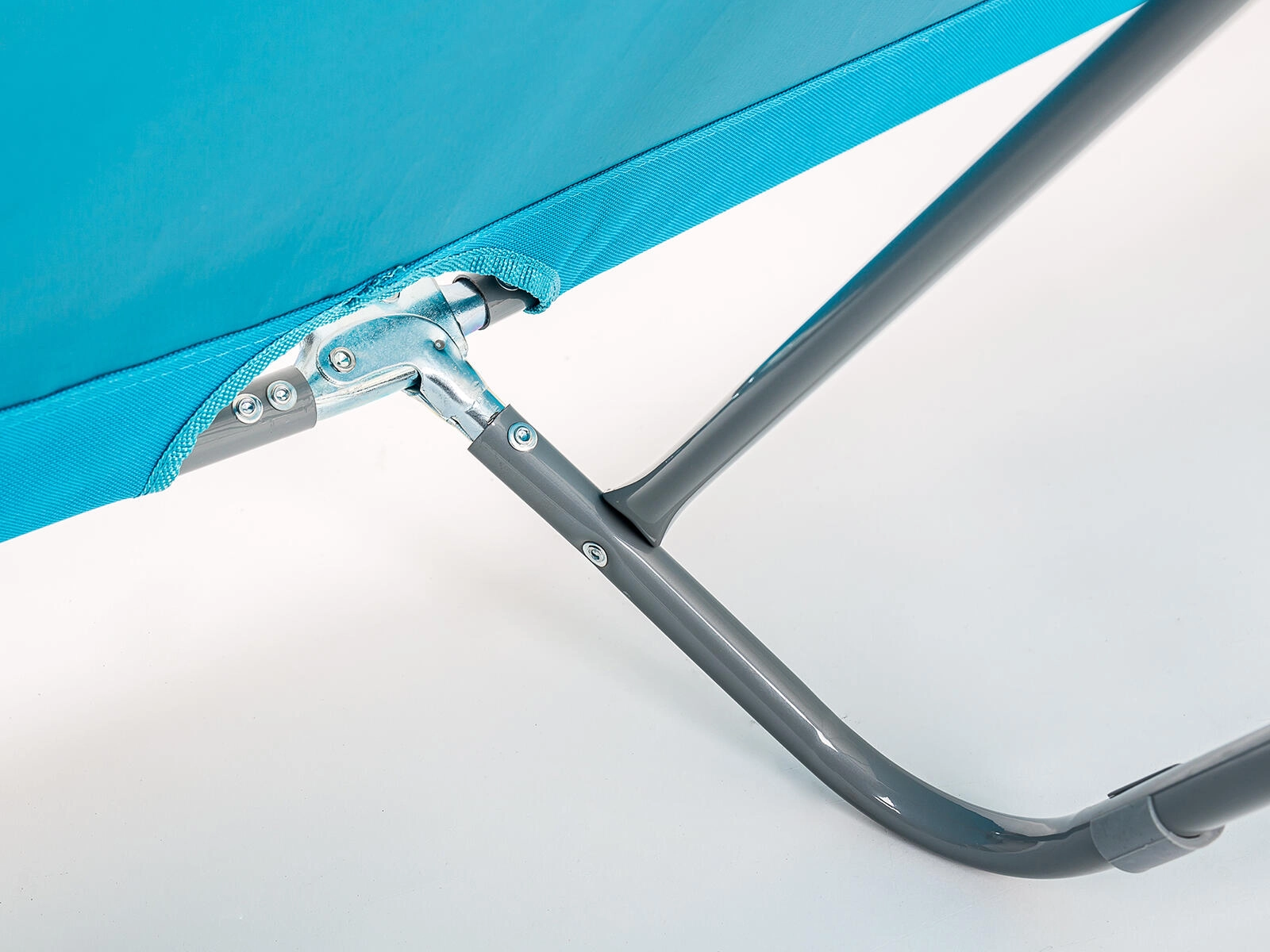 Ležalnik SUNBAY združuje vzdržljivo konstrukcijo in praktično zasnovo za udoben počitek na prostem. Svetlo modra tkanina 600D Oxford je prijetna na dotik in hkrati enostavna za vzdrževanje. Zahvaljujoč nastavljivemu naslonjalu in podnožju si lahko položaj prilagodite povsem po svoje – od branja do popolnega poležavanja.