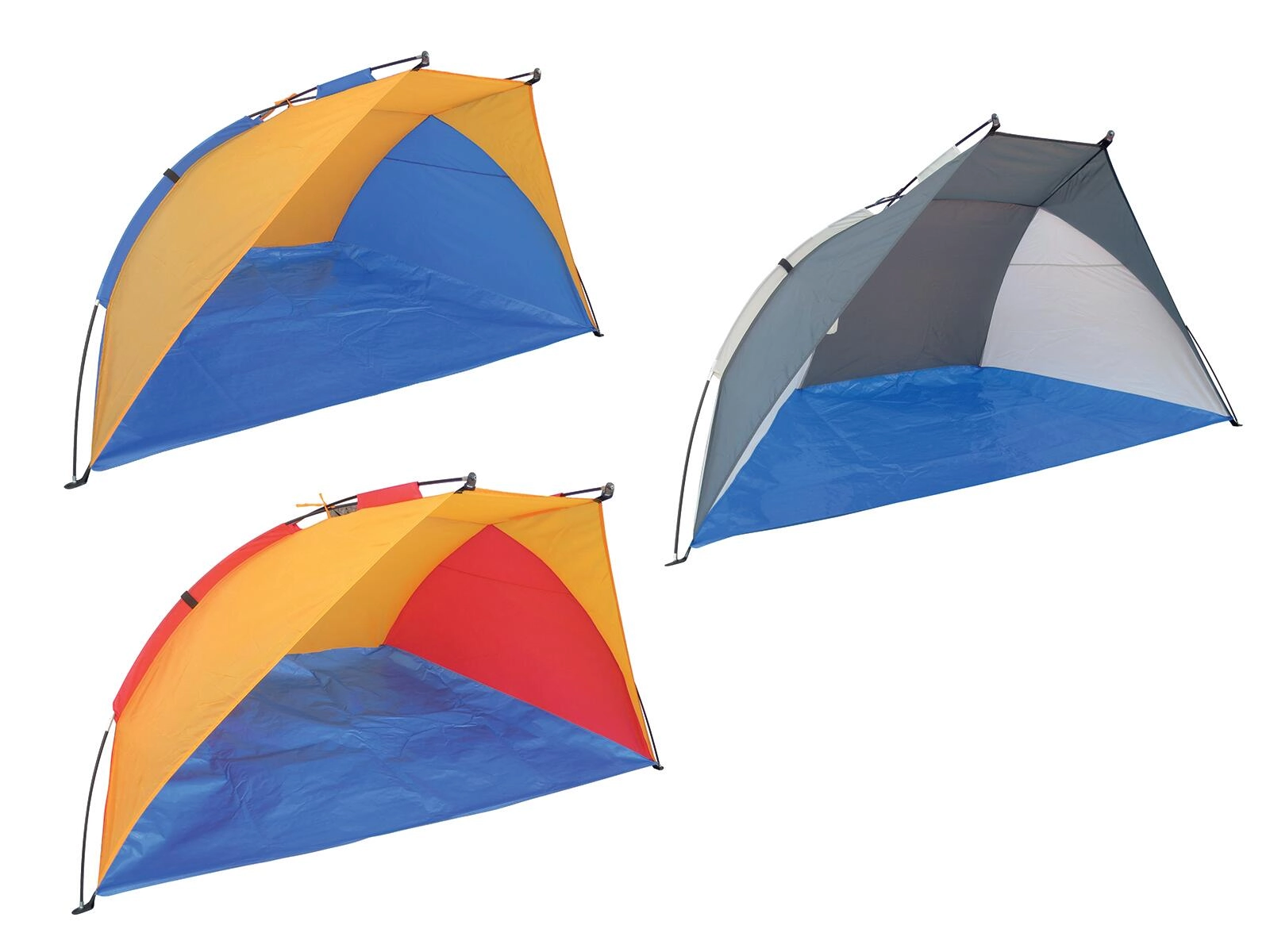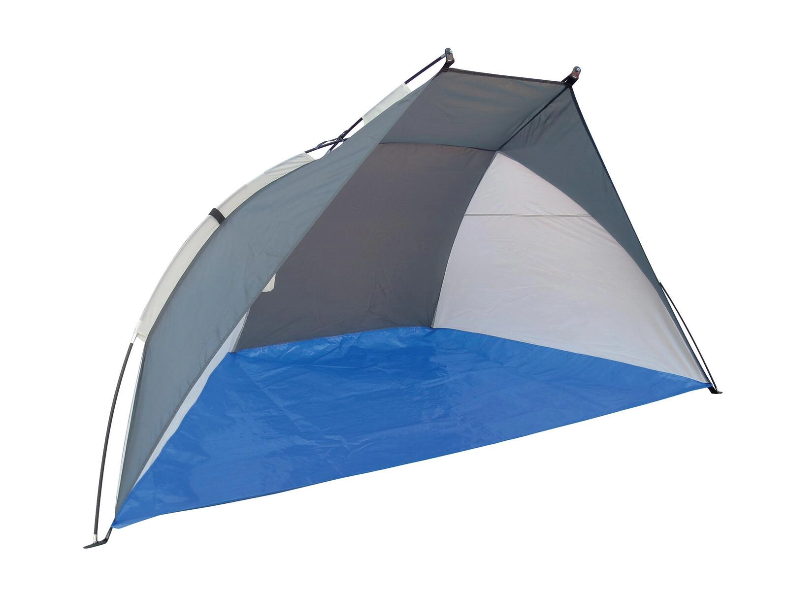 Odporen 170T poliester z integriranim dnom nudi senco in zavetrje za udoben počitek ob vodi.