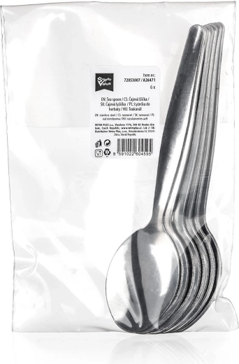 Obogatite svojo kuhinjsko opremo s tem vsestranskim setom čajnih žličk SUPER VALUE. Zahvaljujoč nerjavnemu jeklu 18/0 so žličke trpežne, higienske in primerne za vsakodnevno uporabo. Dolžina 14 cm in debelina 1,2 mm zagotavljata prijeten oprijem in stabilnost pri mešanju čaja, kave ali sladic.