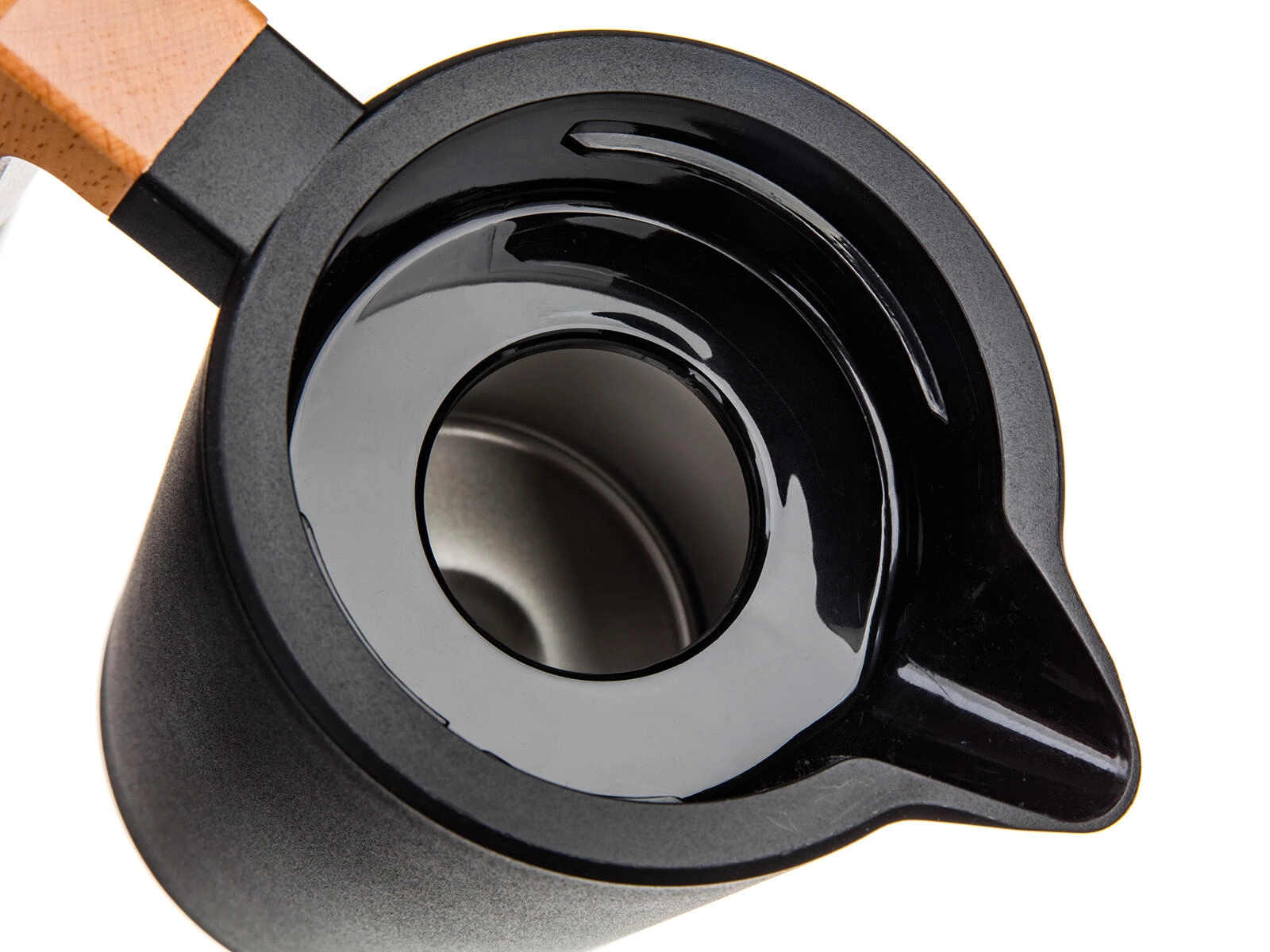 Oblikovan izlivalnik je zasnovan za gladko, nadzorovano točenje brez polivanja – idealno za kavo in čaj.