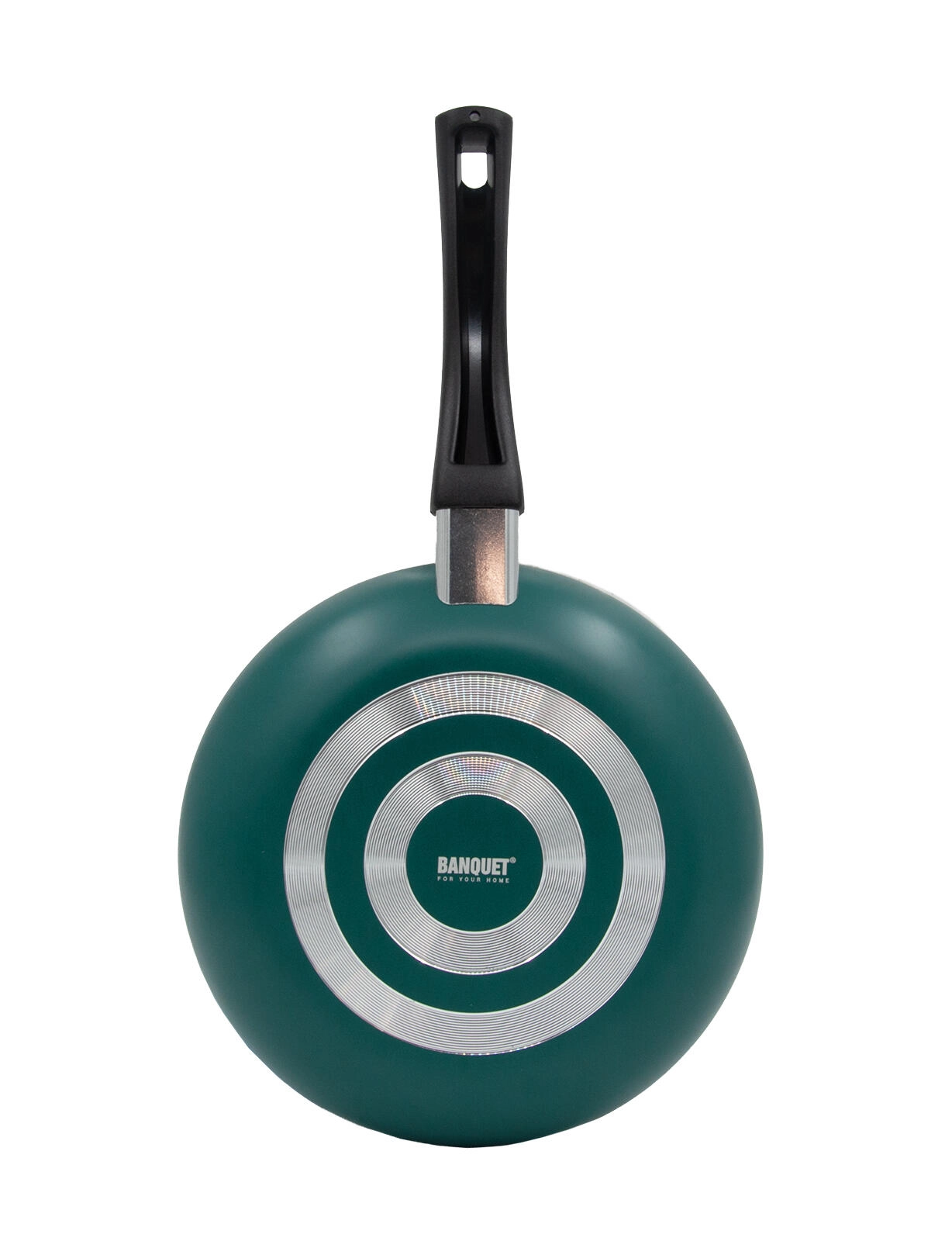 Notranjost v elegantni črni barvi dopolnjuje mat turkizna zunanjost in črn bakelitni ročaj, ki nudi zanesljiv oprijem in udobno rokovanje. Ponev je enostavna za vzdrževanje in primerna za vse vrste kuhalnih plošč razen indukcije.