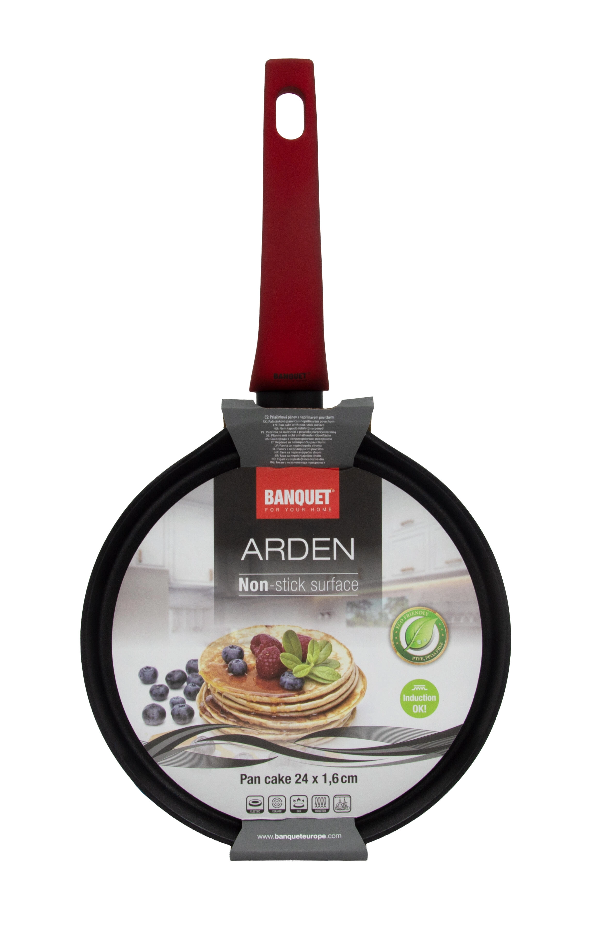 Lahka in trpežna ponev za palačinke ARDEN s premerom 24 cm in nizkim profilom za enostavno obračanje. Neprijemljiva površina zagotavlja gladko pečenje brez prijemanja, hitro porazdelitev toplote in varčno kuhanje. Ergonomski soft-touch ročaj lepo sede v roko, ponev pa je primerna za vse vrste štedilnikov, vključno z indukcijo.