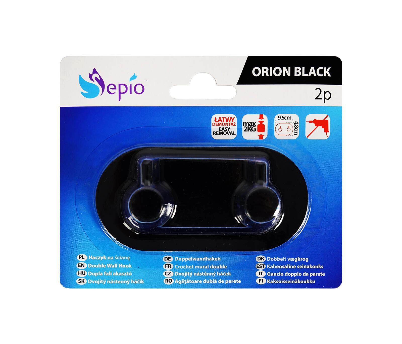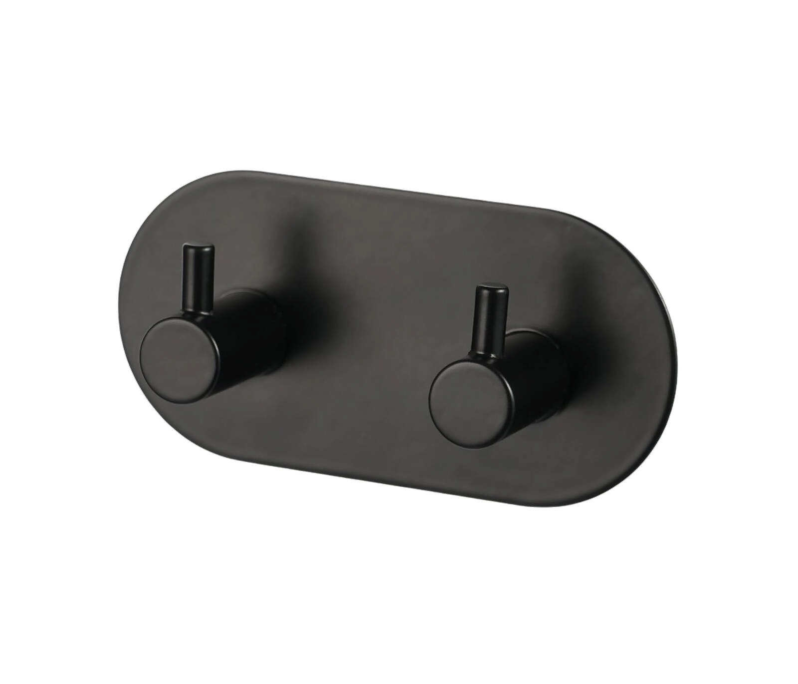 Praktičen in eleganten samolepilni dvojni obešalnik iz kovine v mat črni barvi za kopalnice, predsobe in kuhinje. Zahvaljujoč močni samolepilni plasti ga enostavno namestite brez vrtanja in poškodovanja ploščic. Kompaktne mere 9,5 × 8 × 4,5 cm in dva robustna kljukica poskrbita za red pri brisačah, kopalnih plaščih ali ključih.