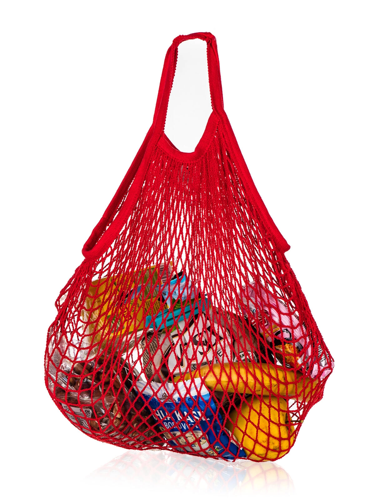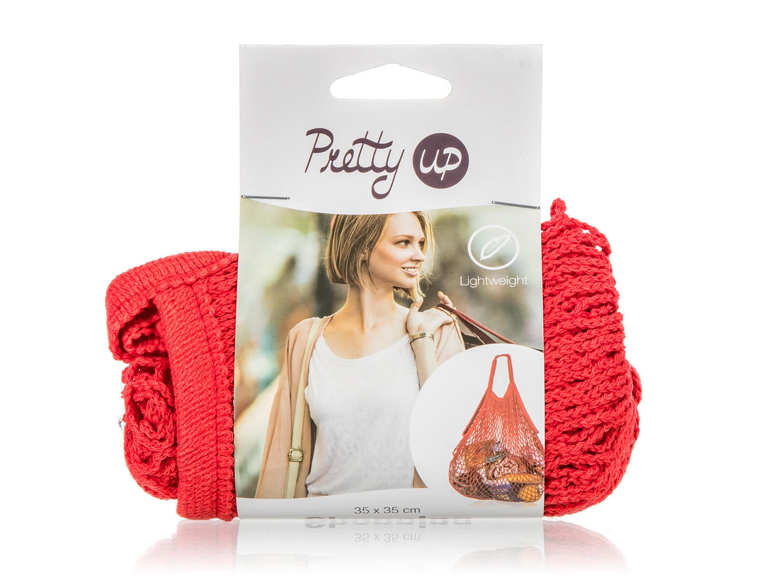 Praktična rdeča mrežasta torba PRETTY UP je odlična izbira za okolju prijazno in elegantno nakupovanje. Zahvaljujoč prožni bombažni mreži se prilagodi vsebini, hkrati pa ostane lahka in jo je mogoče zlahka zložiti v torbico ali nahrbtnik.