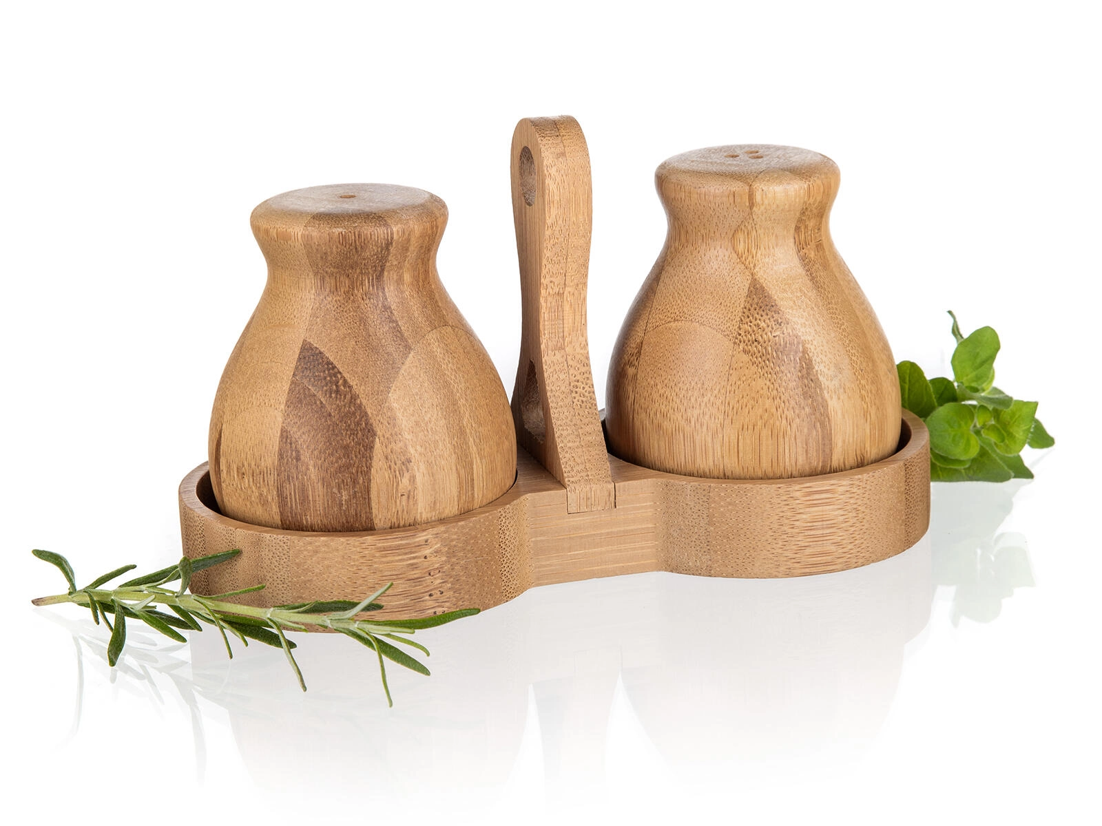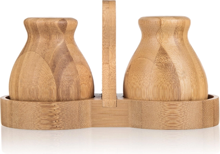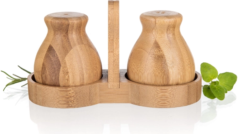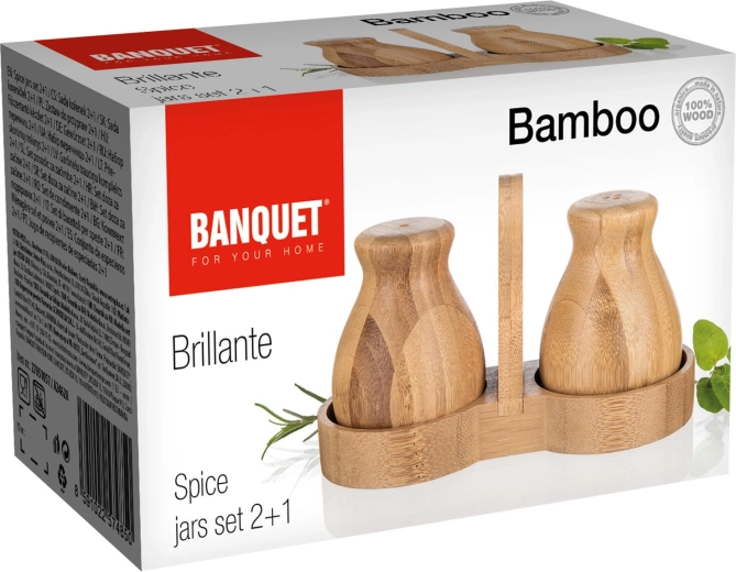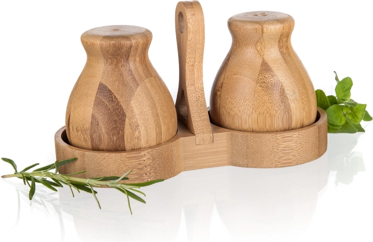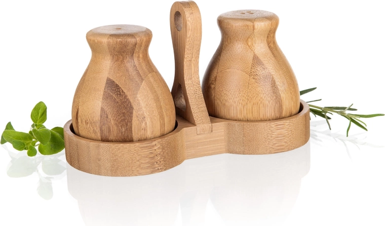 Že ob prvi uporabi boste cenili ergonomsko obliko posodic, ki udobno ležijo v dlani, ter fine dozirne odprtine za enakomerno posipanje. Komplet lahko stilsko uskladite z drugimi izdelki iz kolekcije BRILLANTE BAMBOO in tako ustvarite harmoničen videz kuhinje.