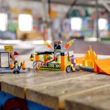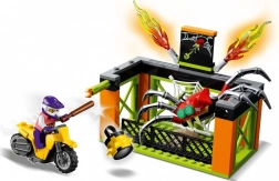 LEGO City kaskaderski park Stuntz vam omogoča zagnati motor s vztrajnikom in izvajati osupljive trike. Z več rampami in ognjenimi ovirami ta komplet ponuja neskončne možnosti za domišljijsko igro. Lahko ga kombinirate z drugimi seti LEGO City Stuntz in ustvarite še večji kaskaderski park.