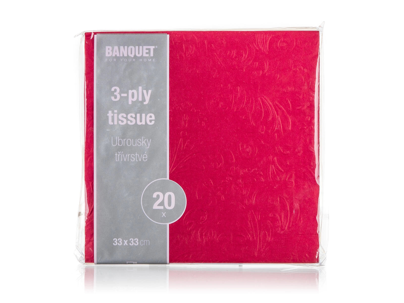 Elegantni papirnati prtički v odtenku bordo, velikosti 33 × 33 cm, popestrijo vsakdanje in slavnostno pogrinjke. Ponašajo se s 3-slojno zasnovo za večjo trpežnost in reliefnim embosom za stilski videz ter boljšo vpojnost. Praktično pakiranje 20 kos je odlična izbira za družinske večerje, rojstne dni in zabave.