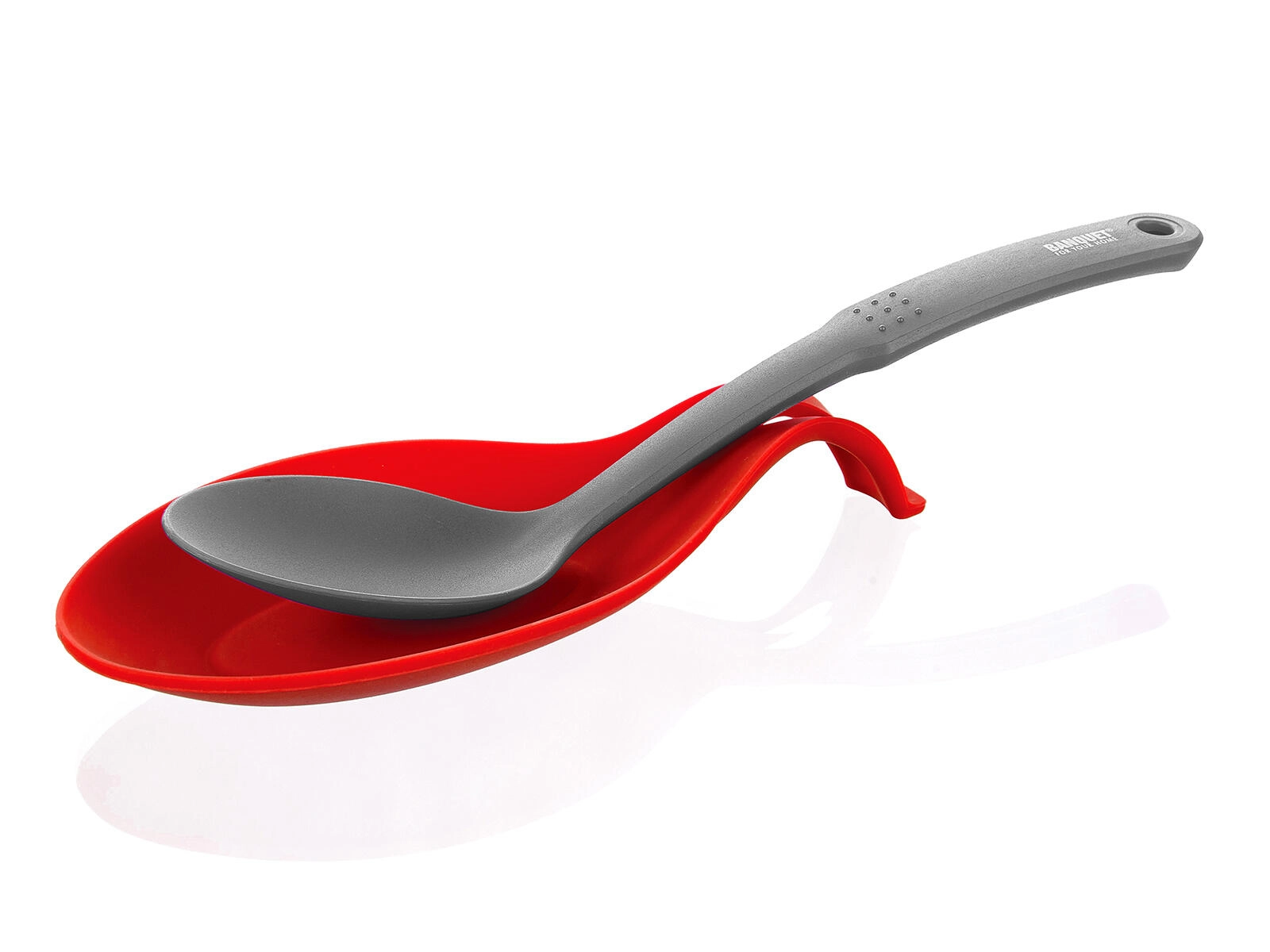 Oblika za udobno namestitev kuhalnic in žlic preprečuje zdrs in drži pripomočke nad posodico.