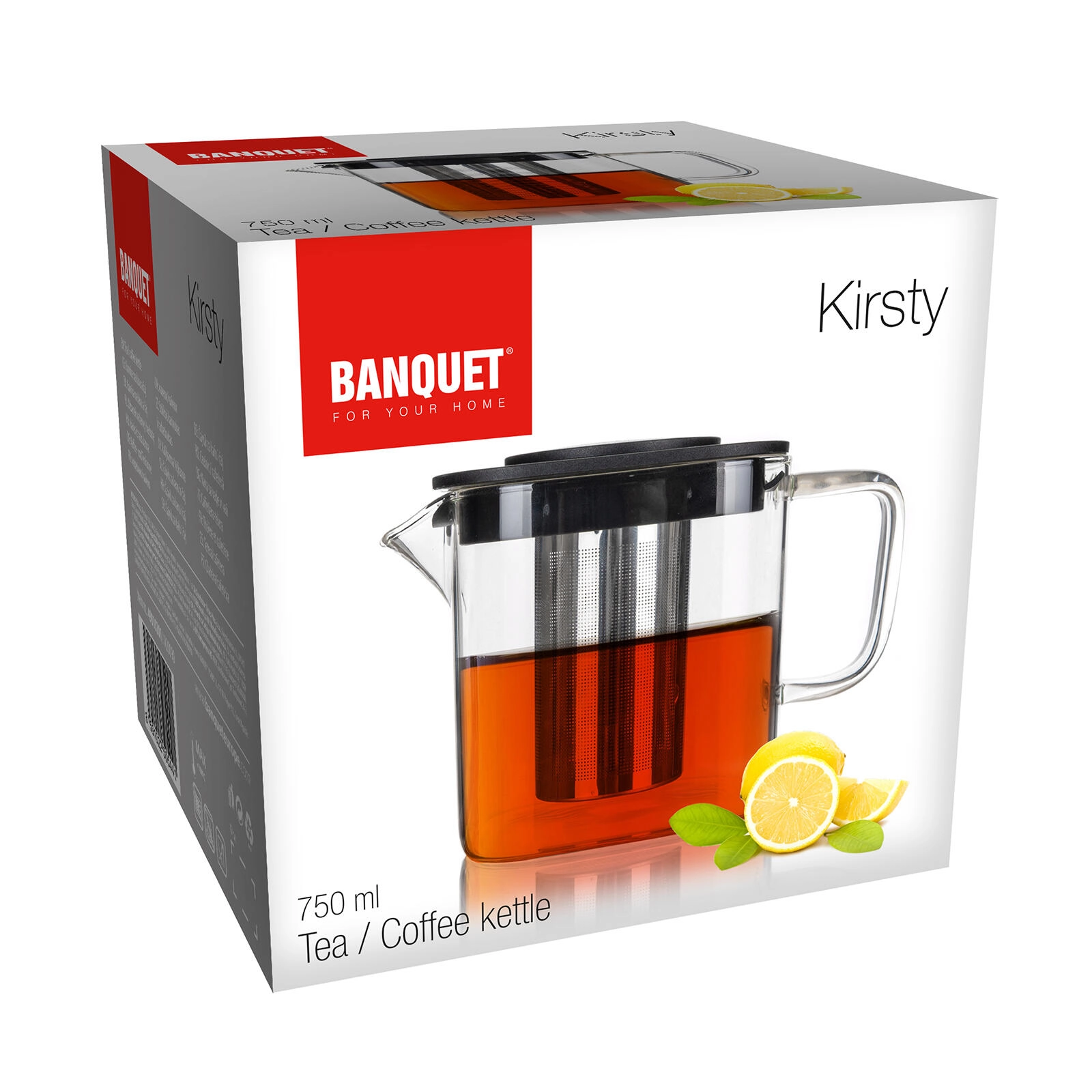 Elegantna steklena čajnika KIRSTY s prostornino 0,75 l in nerjavnim cedilom je idealna za pripravo sipanih čajev, kave in domačih limonad. Zahvaljujoč prosojnemu steklu zlahka nadzorujete namakanje, fino cedilo ujame tudi drobne čajne lističe, udoben steklen ročaj pa poskrbi za varno nalivanje. Pokrov iz odporne plastike dobro tesni, steklo pa prenese temperature do 100 °C.