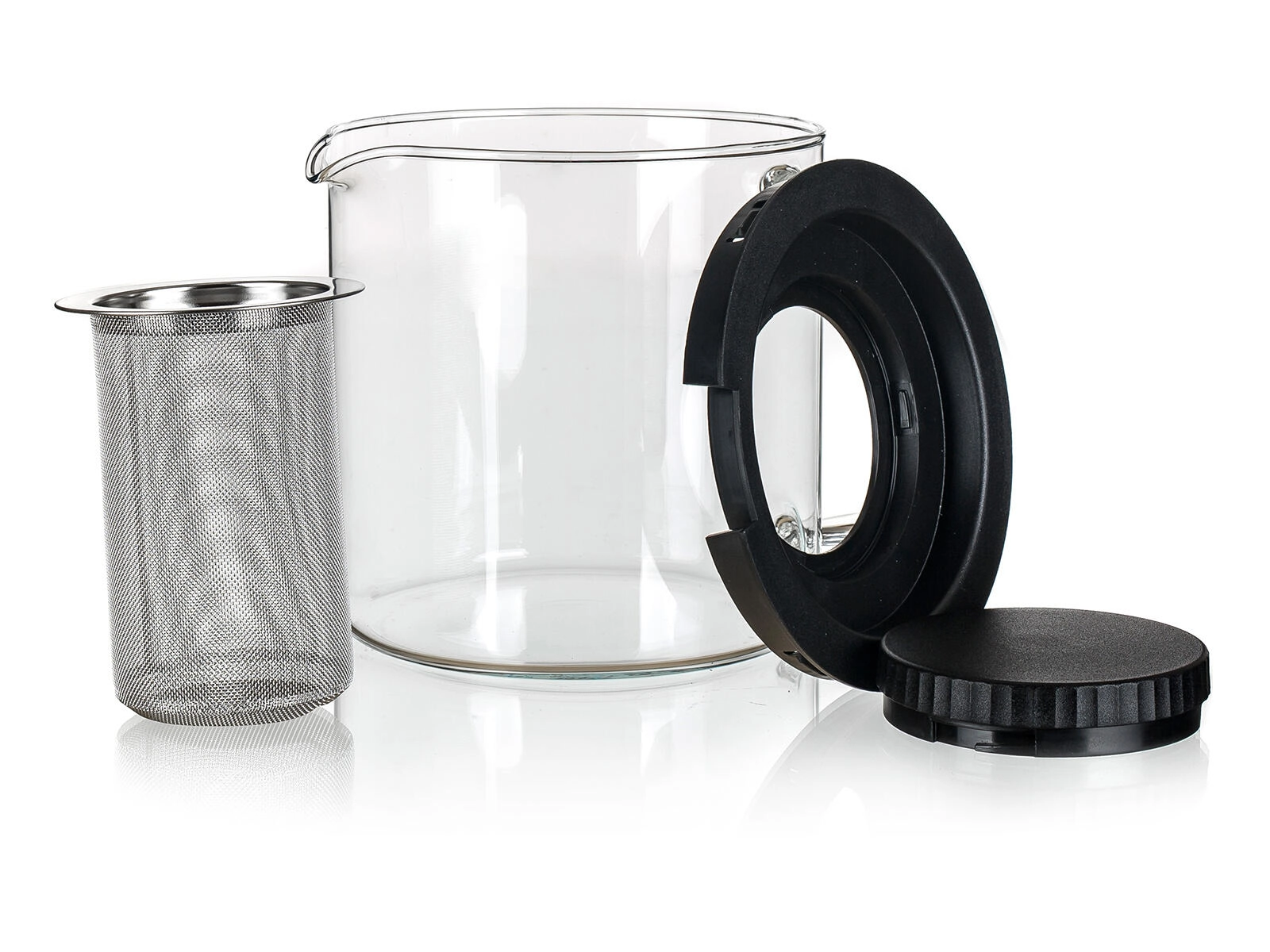 Elegantna steklena konvica s prostornino 1,3 l iz trpežnega borosilikatnega stekla je odlična za ljubitelje čajev in zelišč. Ponuja odstranljiv nerjavni filter za rahlane čaje, prosojno ohišje za nadzor namakanja in visoko toplotno odpornost od -40 °C do 300 °C. Preprosto vzdrževanje zahvaljujoč možnosti pomivanja v pomivalnem stroju ter udobno nalivanje s plastičnim pokrovom in steklenim ročajem.