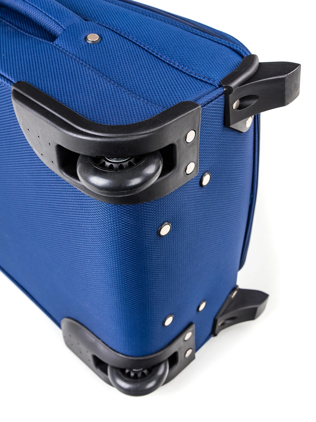 Praktičen potovalni kovček iz trpežne tekstilije združuje nizko težo s premišljeno opremo za udobno potovanje. Zaradi mer 38 × 25 × 56 cm in prostornine 48 l je odlična izbira za vikend oddihe in poslovne poti. Dve inline kolesi ter teleskopski ročaj z nastavitvijo višine zagotavljata gladko premikanje tudi na prometnem letališču.