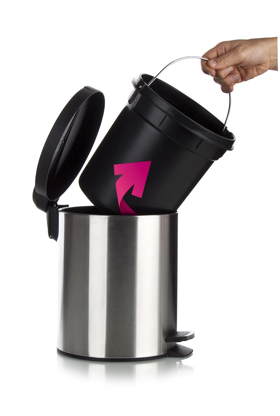 Z pedalnim mehanizmom pokrov odprete brez uporabe rok, kar zagotavlja višjo stopnjo higiene pri vsakodnevni uporabi. Kompaktna okrogla oblika in 5 l kapaciteta sta primerni za manjše prostore, kot so kopalnice, stranišča ali pod pisalnimi mizami.