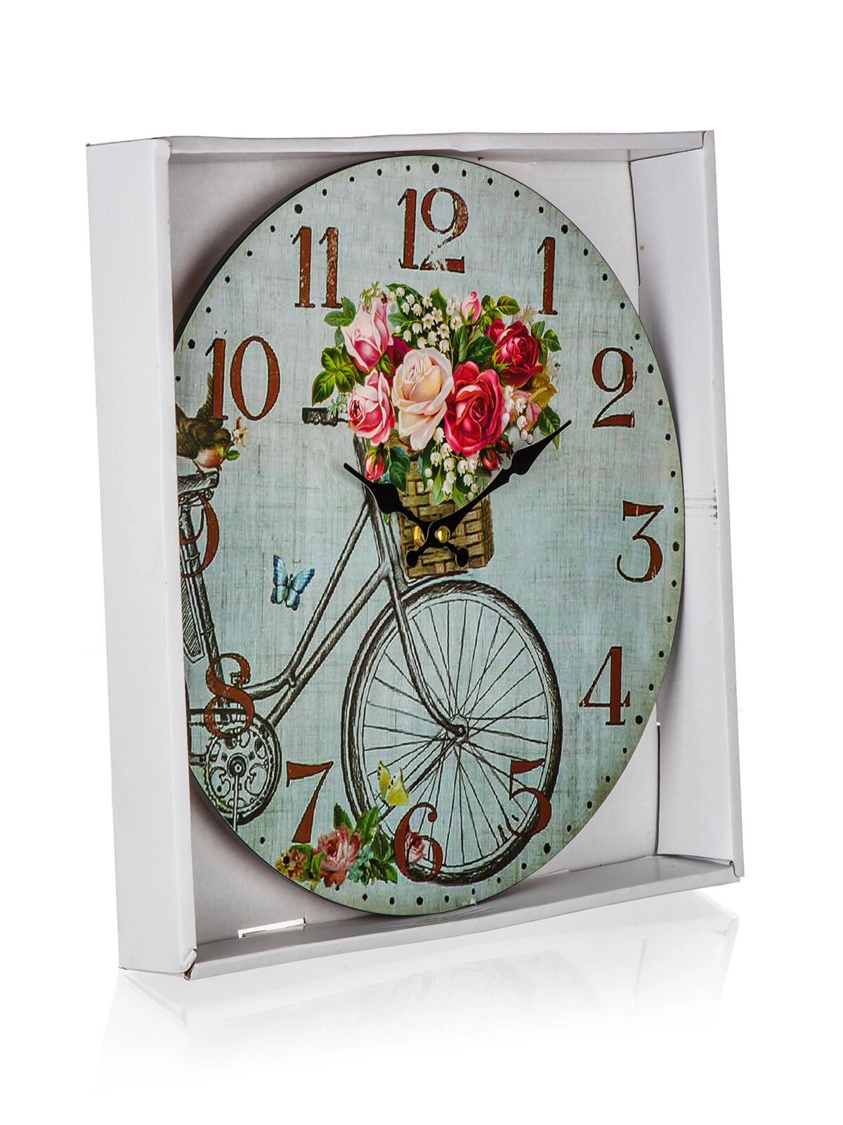 Dodajte svojemu domu edinstven slog s stensko uro premera 34 cm z motivom BICYCLE. Okrogla oblika, izrazita številčnica in celoplošni dekor se zlahka ujemajo tako z modernimi kot z vintage interierji. Ura je praktična, pregledna in deluje kot okusna dekoracija.