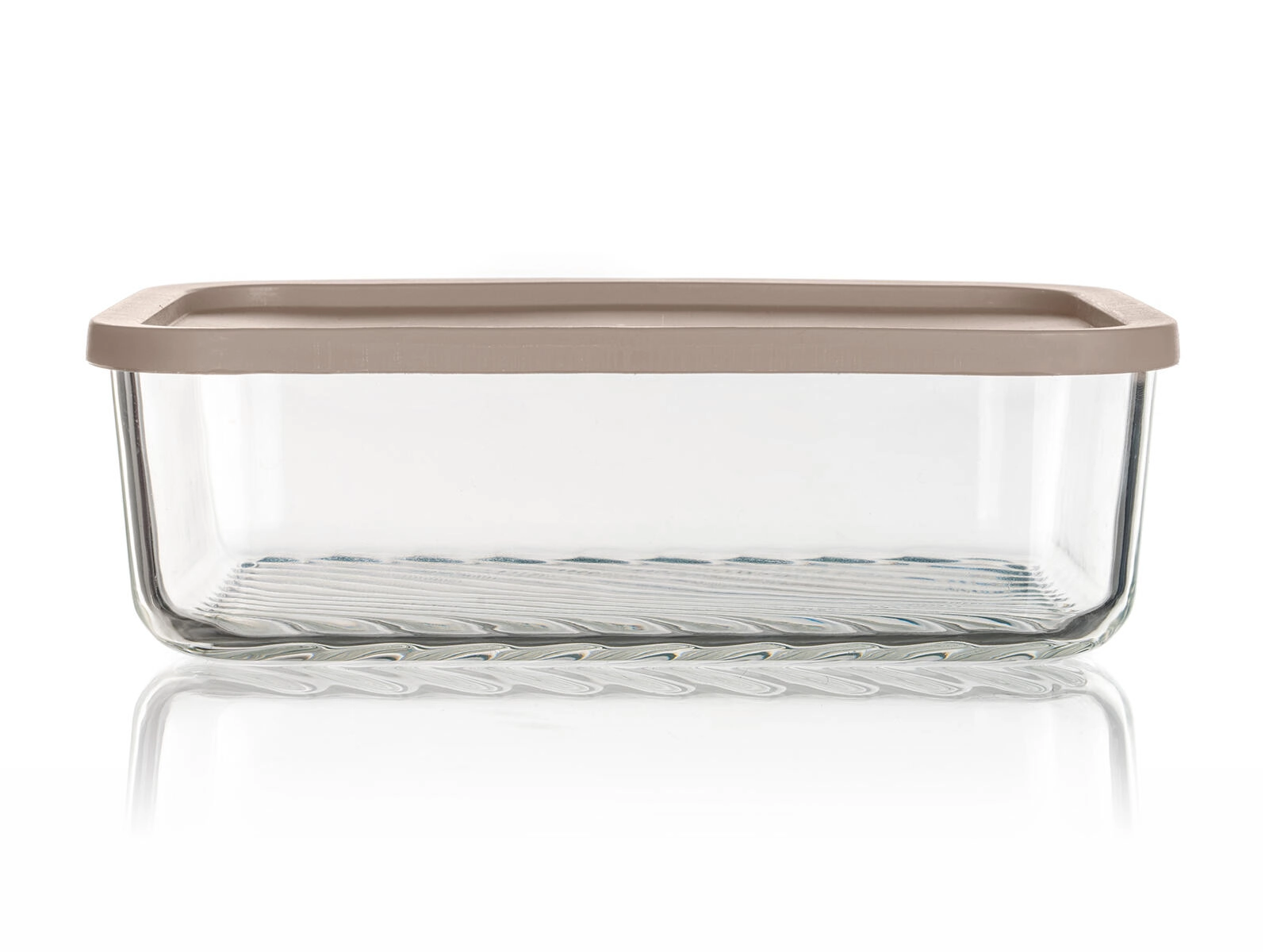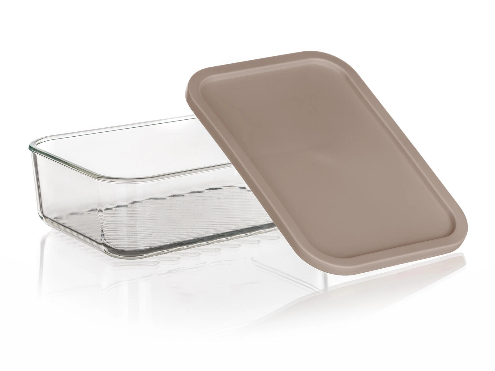 Praktična steklena posoda WAVE s prostornino 1,55 l je idealna za vsakodnevno shranjevanje jedi, pripravo za zamrzovanje in peko. Odporno steklo omogoča uporabo v pečici in mikrovalovni pečici (brez pokrova), medtem ko plastičen pokrov v odtenku latte zagotavlja zanesljivo tesnjenje in dolgotrajno svežino. Zahvaljujoč pravokotni obliki se odlično prilega v hladilnik, shrambo in potovalno torbo.