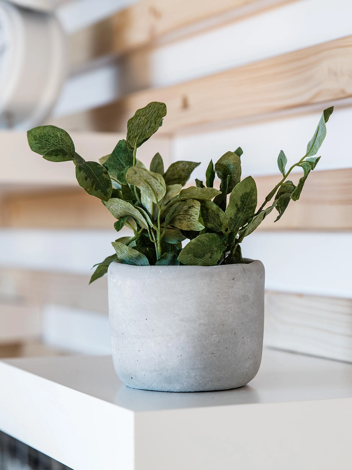 Preprost siv lonček v cementnem slogu poudarja minimalistični dizajn in se zlahka ujema z drugo dekoracijo.