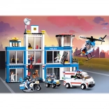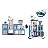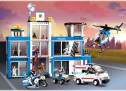Uživajte v realistčnih scenarijih zasledovanj in reševalnih akcij. Komplet vsebuje podrobno policijsko postajo s pristajalno ploščadjo za helikopter, reševalno vozilo in policijski motor. Zahvaljujoč 605 kockam in 7 figuricam lahko ustvarjate lastne zgodbe – od načrtovanja pobega iz zapora do posredovanja specialne enote.