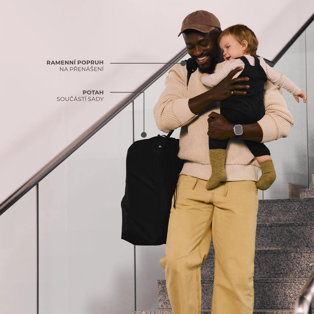Intuitiven mehanizem omogoča bliskovito zlaganje v kompakten paket, ki izpolnjuje standarde IATA za ročno prtljago. Po zložitvi voziček samostojno stoji, prenašanje pa olajša vgrajen ramenski trak.