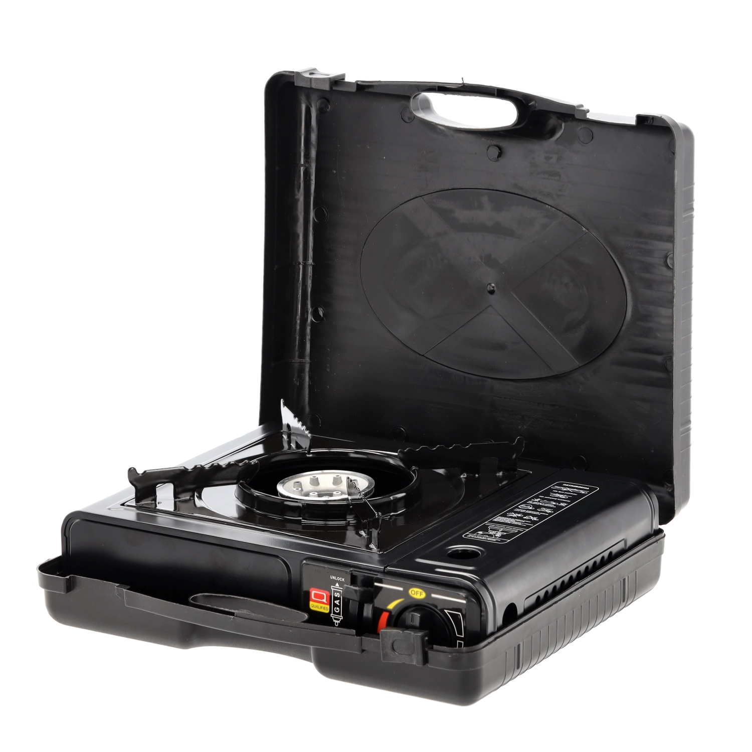 Uživajte v topli hrani in pijači kjer koli v naravi. Ta prenosni plinski gorilnik je zasnovan za zanesljivost in preprostost – od trpežne kovinske konstrukcije do hitrega piezo vžiga brez vžigalic. Mere 34 × 25 × 8 cm zagotavljajo, da se prilega nahrbtniku ali prtljažniku avtomobila.
