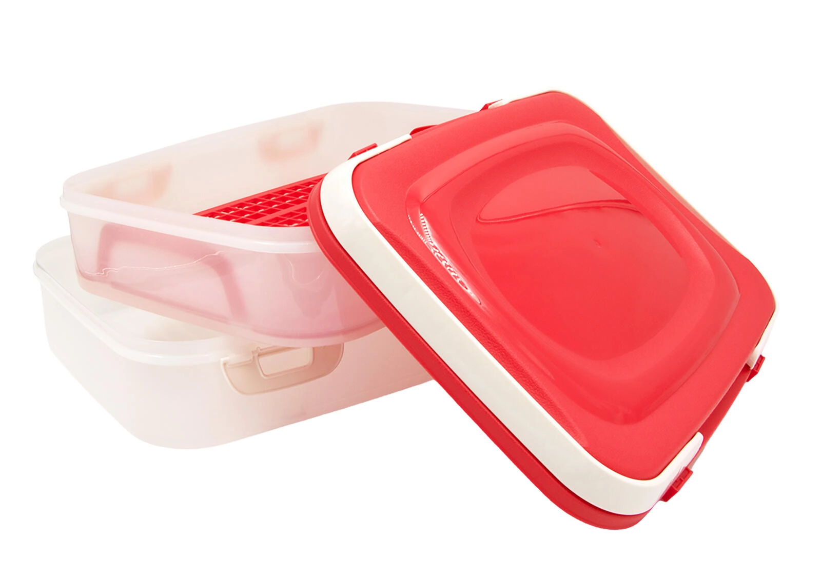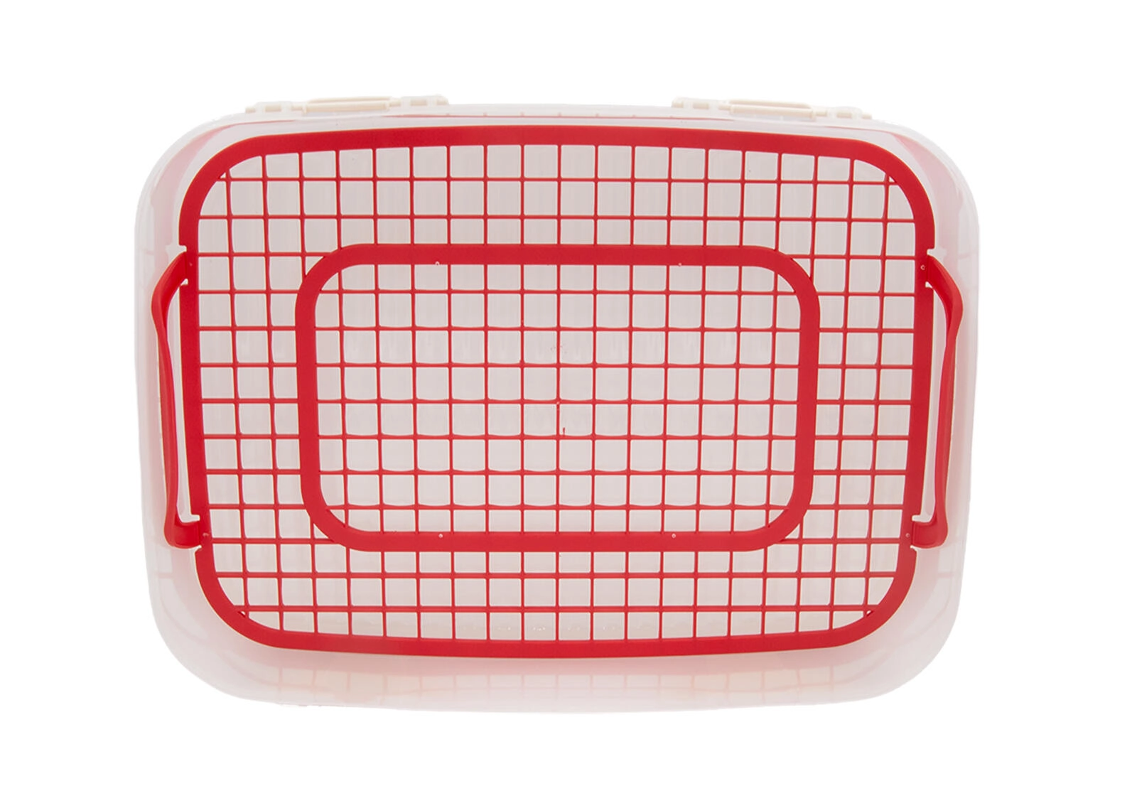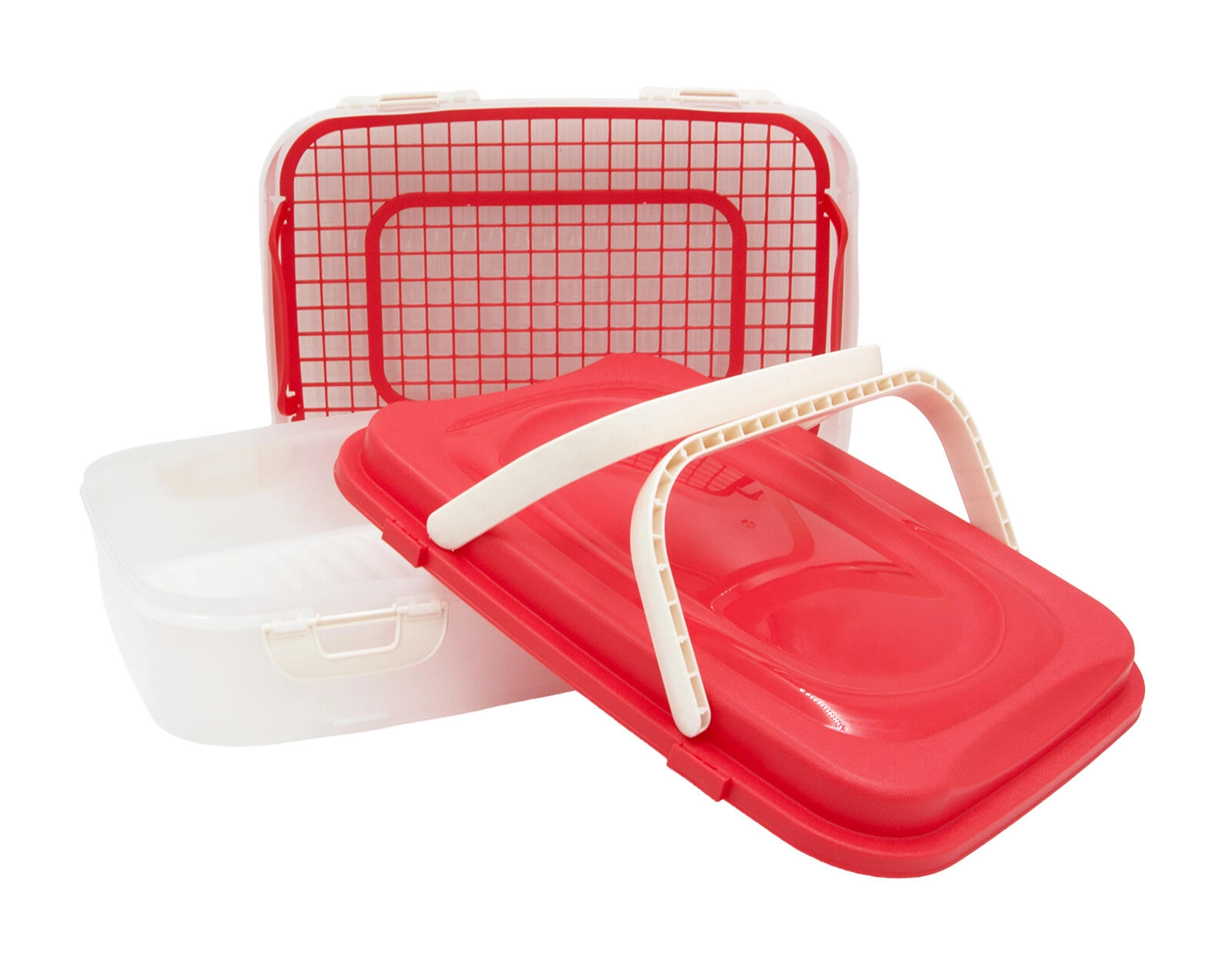 Z notranjo mrežico z ročaji vsebino zlahka vzamete ven brez nereda. Posoda je idealna za piknike, vrtne zabave, obiske in vsakodnevni prenos v službo. Enostavna za čiščenje in primerna za večkratno uporabo.