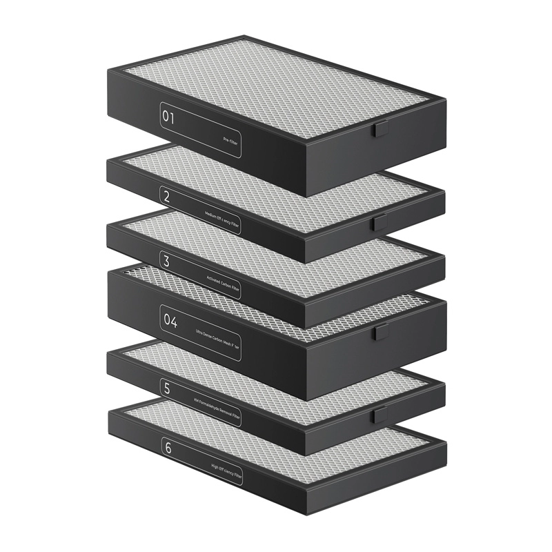 - 7 plasti filtracije, vključno z HEPA in dvojno ogljikovo plastjo za vonjave in VOC
