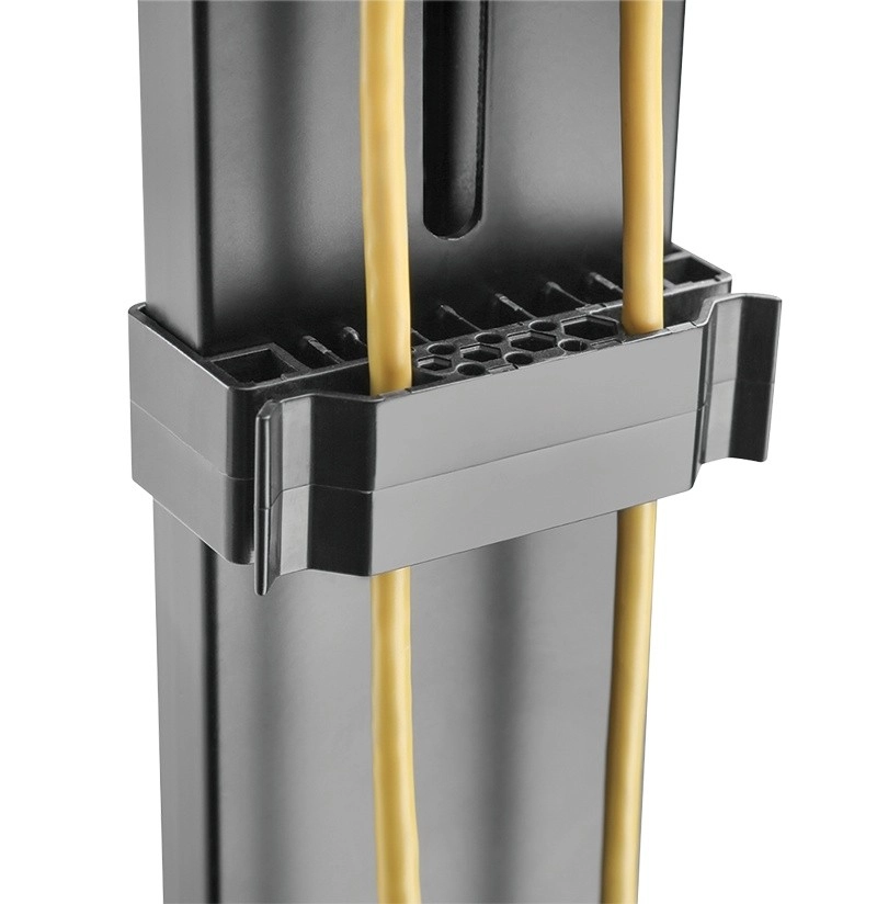 Stabilno vijačno-pritrdilno držalo na rob mize prihrani prostor in nudi trdno oporo. Sponke za kable vodijo vodnike vzdolž konstrukcije, zato imate vse urejeno in brez zmede kablov.