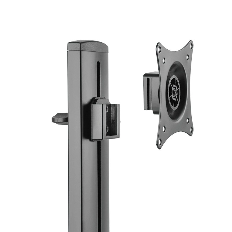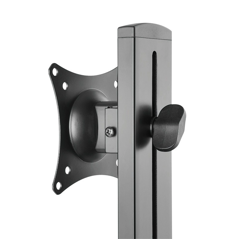 To kovinsko namizno stojalo je združljivo z VESA in je namenjeno monitorjem 17–32" do mase 8 kg. Zahvaljujoč nastavljivemu stebru in zglobu zlahka prilagodite višino, naklon in zasuk za udobno delo, spremljanje vsebin ali igranje.