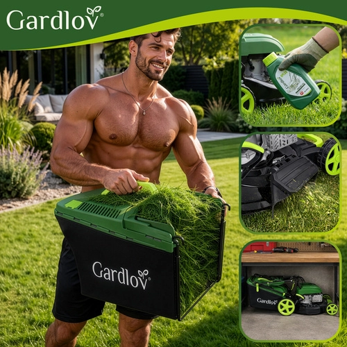 Zmogljiva bencinska kosilnica GARDLOV DriveXPro s pogonom in širino reza 51 cm brez težav obvlada tudi gost trato. Močan motor 196 cm³ / 3,4 kW, sistem 4v1 (zbiranje, zadnji in stranski izmet, mulčenje) ter velik 60 l koš pospešijo delo in povečajo udobje. Odporno jekleno ohišje in kolesa z ležaji zagotavljajo dolgo življenjsko dobo in enostavno manevriranje.