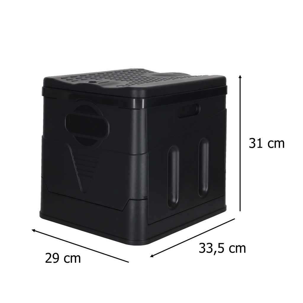 - Odporen in stabilen – PP plastika, nosilnost do 115 kg, varna uporaba na terenu.