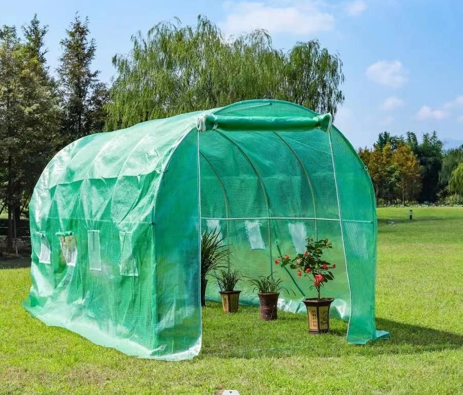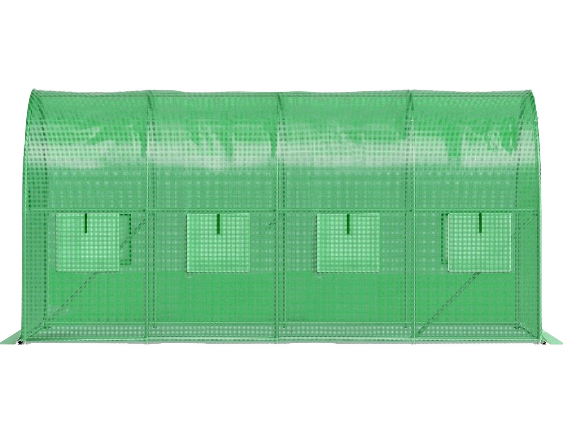 Ta prostoren vrtni rastlinjak vam pomaga podaljšati gojitveno sezono in zaščititi rastline pred vetrom, dežjem in škodljivci. Trdna jeklena konstrukcija z antikorozijsko obdelavo ter ojačana PE folija 140 g/m² z UV zaščito zagotavljata dolgo življenjsko dobo in stabilnost tudi v spremenljivem vremenu.