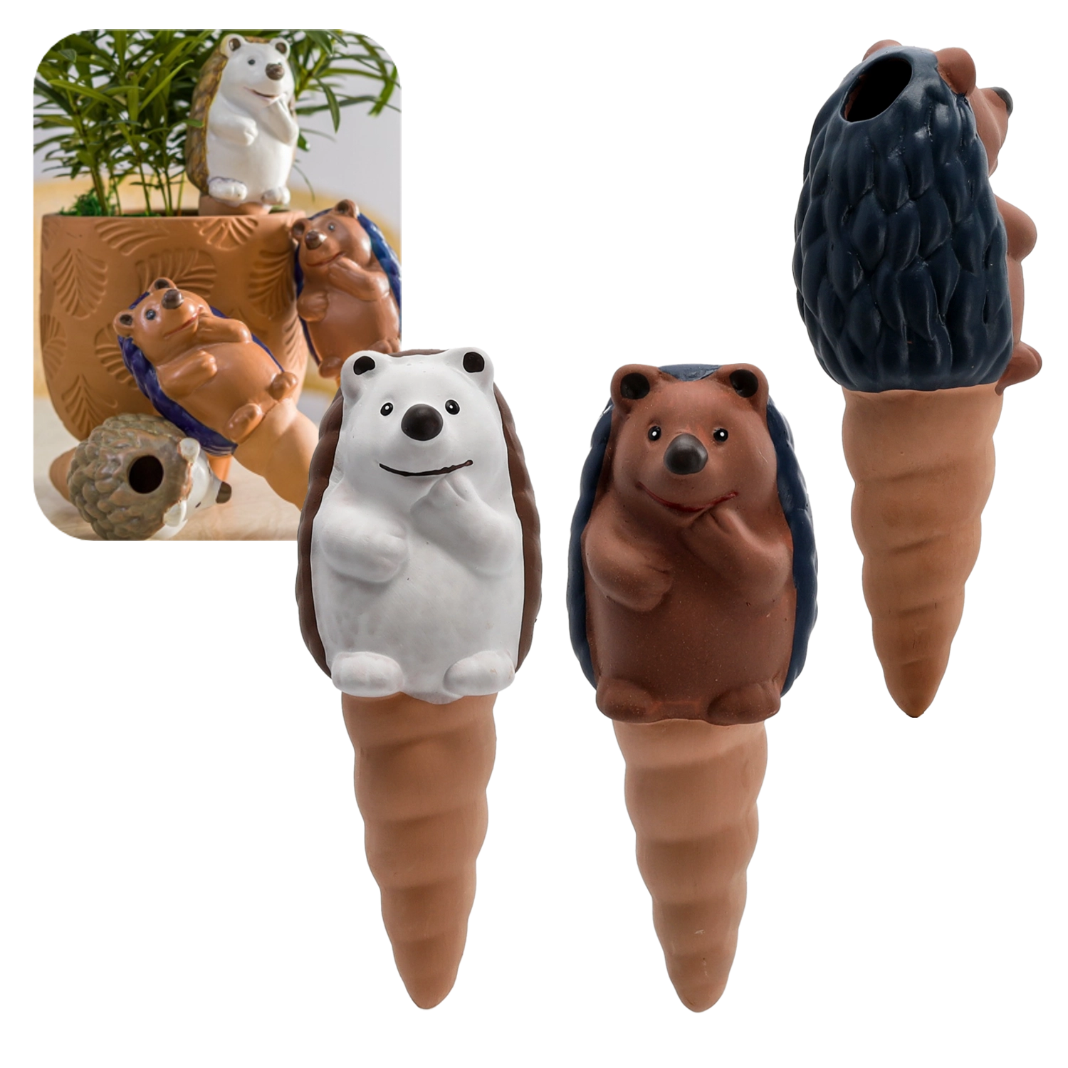 Prisrčen keramični samozalivalni jež rastlinam zagotovi stalno vlago, ko ste odsotni ali pozabite zalivati. Dovolj je, da ga napolnite z vodo in vstavite v substrat – voda se sprošča postopoma neposredno do korenin. Idealen za sobne in balkonske rastline, doda dekorativen element in ohranja cvetje sveže in dobro hidrirano. Mešanico barv dobavljamo glede na trenutno razpoložljivost.