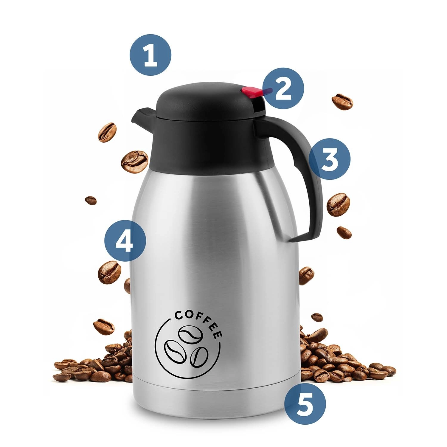 Praktičen in stilski pomočnik za dom, pisarno in izlete. Nerjaveči vakuumski vrč BERDSEN s prostornino 2000 ml združuje sodoben videz z visoko funkcionalnostjo. Dvojna stena iz nerjavečega jekla nudi vrhunsko toplotno izolacijo, medtem ko samodejno zapiralo omogoča točenje z eno roko brez kapljanja.