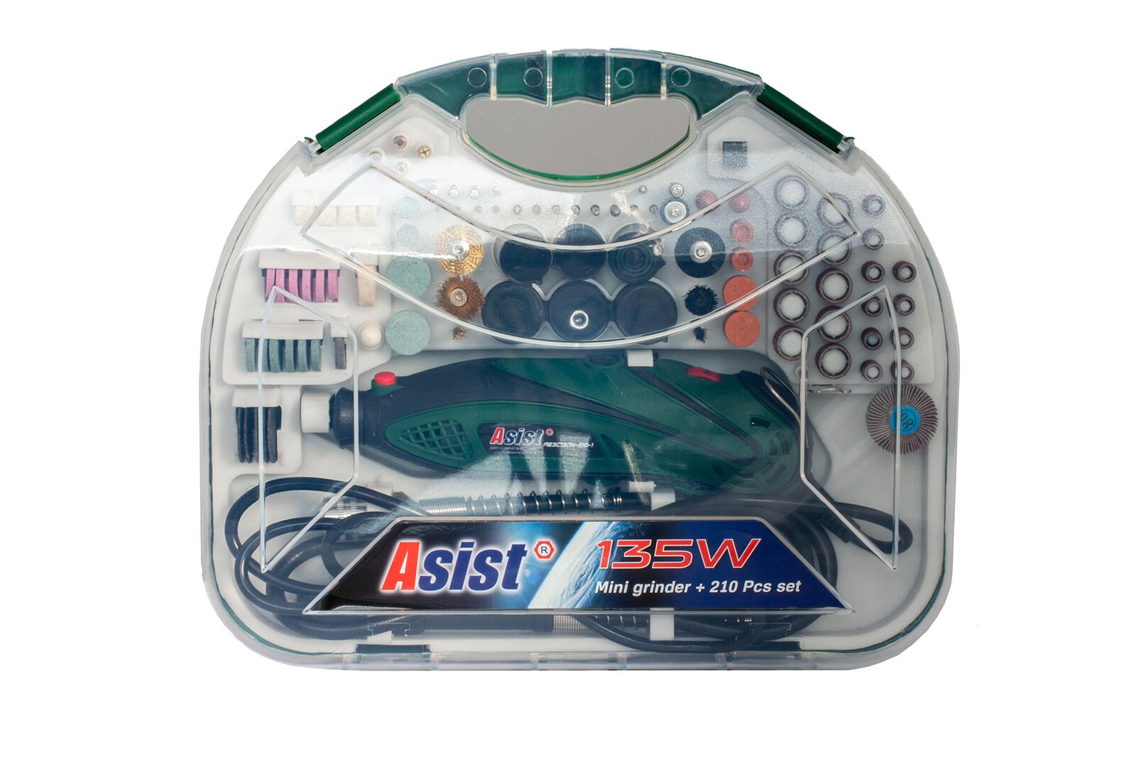 Kompaktna mini ravnalna brusilka ASIST 135 W s stopenjskim uravnavanjem vrtljajev 8.000–33.000 min⁻¹ je idealna za domačo delavnico in hobi projekte. Zahvaljujoč bogatemu setu 210 nastavkov in fleksibilni gredi zmore brušenje, rezanje, vrtanje, graviranje in poliranje mehkih ter trdih materialov. Lahka zasnova 0,6 kg in ergonomski oprijem zagotavljata udobno delo, vse je pregledno shranjeno v praktičnem kovčku.