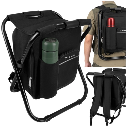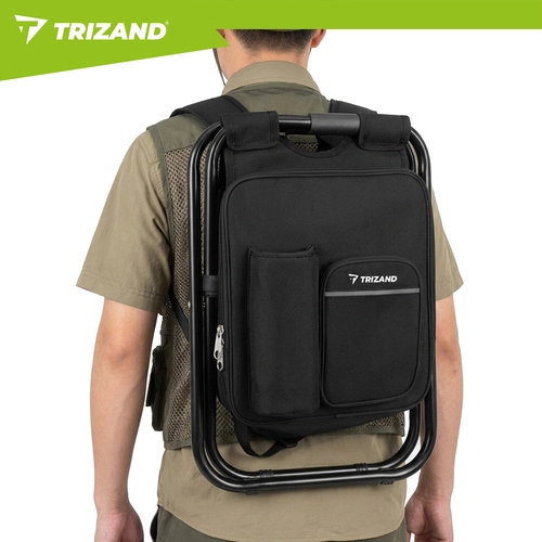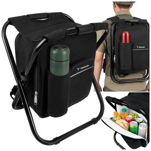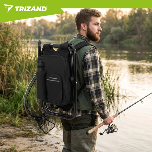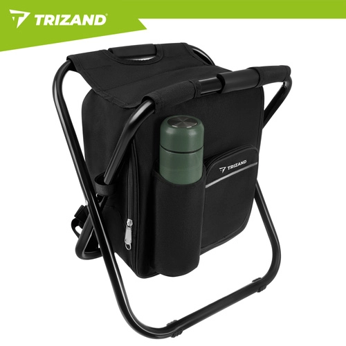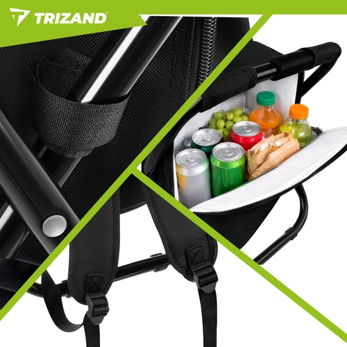Praktična rešitev za ribiče, pohodnike in kampiste: hladilni nahrbtnik s stolčkom TRIZAND združuje 3v1 – sedež, nahrbtnik in termoizolacijsko torbo. Zahvaljujoč čvrsti jekleni konstrukciji z nosilnostjo do 150 kg, lahki zasnovi in vodoodpornim materialom je idealen za izlete, piknike in dolga čakanja ob vodi.