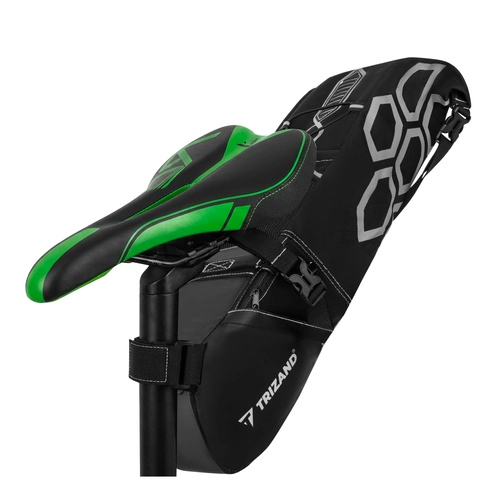 Iščete zanesljiv shranjevalni prostor na kolesu brez potrebe po nahrbtniku? Podsedežna torba TRIZAND z volumnom 12 litrov sprejme vse potrebno za izlete in bikepacking – od orodja in zračnic do oblačil ali malice. Trpežna tkanina s PU premazom ščiti vsebino pred vlago in umazanijo, odsevni potisk pa izboljša vidnost v mraku.